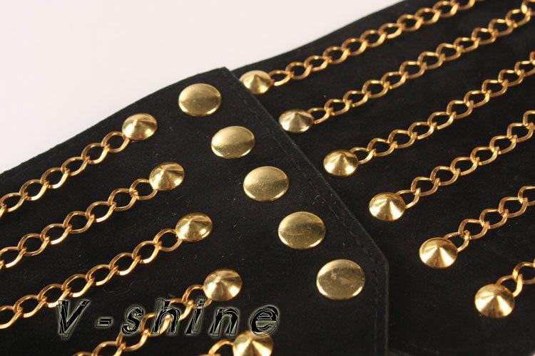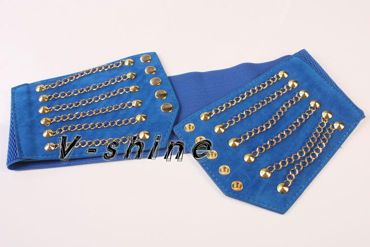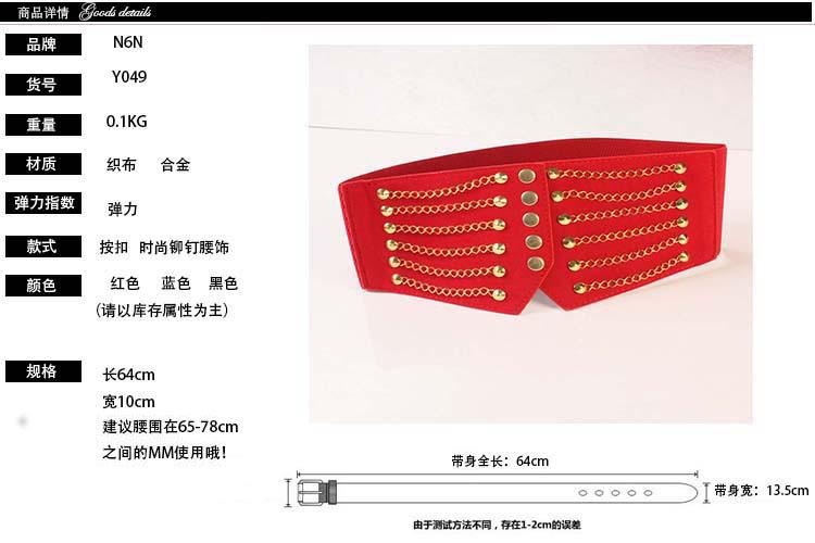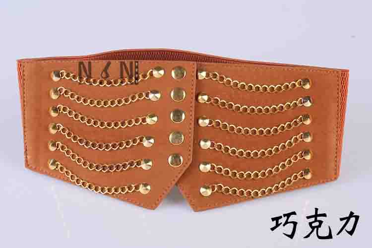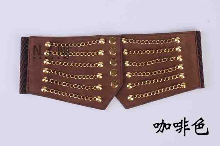 Cinturón ultra ancho estilo punk de moda transfronteriza europea y americana para mujer, decoración con remaches de cadena, Joker, cintura elástica con sello al por mayor