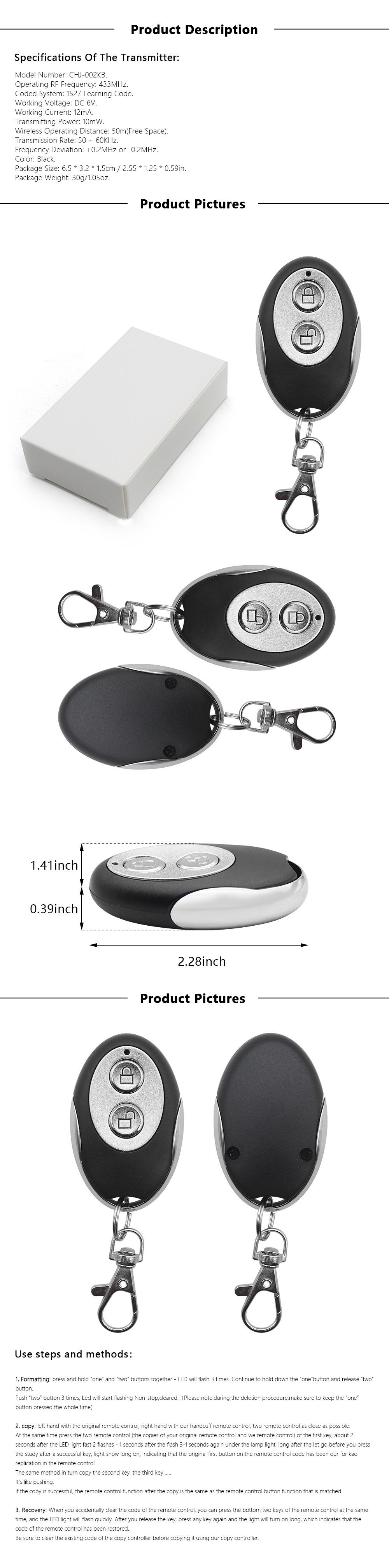 Shenzhen Chenjie Electronics Co., Ltd. es una empresa nacional de alta tecnología fundada en 2003 con 15 años de experiencia en I+D, producción, ventas y servicio técnico. Cuenta con más de 100 empleados, incluyendo a numerosos ingenieros de software de RF inalámbrico del equipo de I+D. Es una empresa profesional especializada en I+D y producción de productos antirrobo para hogares inteligentes, como controles remotos para puertas de garaje, controles remotos para automóviles, controles remotos para lámparas LED, controles remotos RF de 2.4G, detectores infrarrojos, alarmas de seguridad, etc.