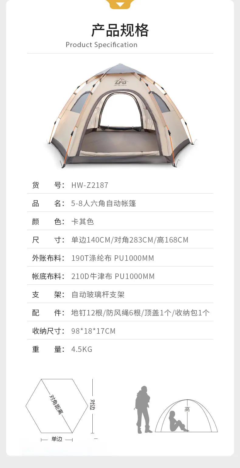 Tienda de Camping al Aire Libre Automática de Apertura Rápida Hexagonal para Parque y Ocio Tienda para Varias Personas Sombrilla de Playa Tienda de Camping
