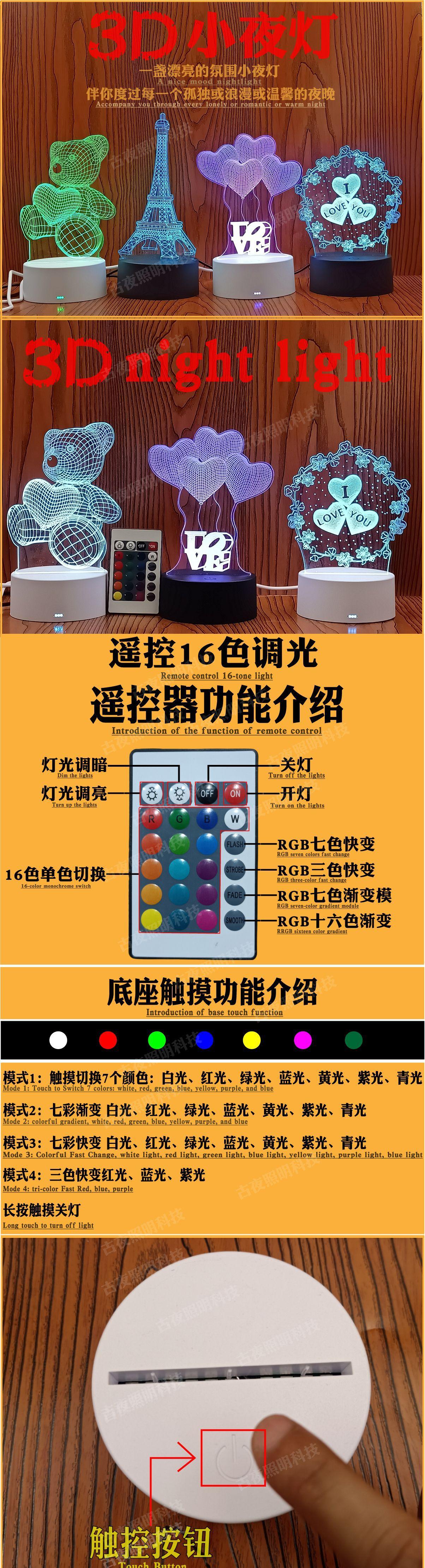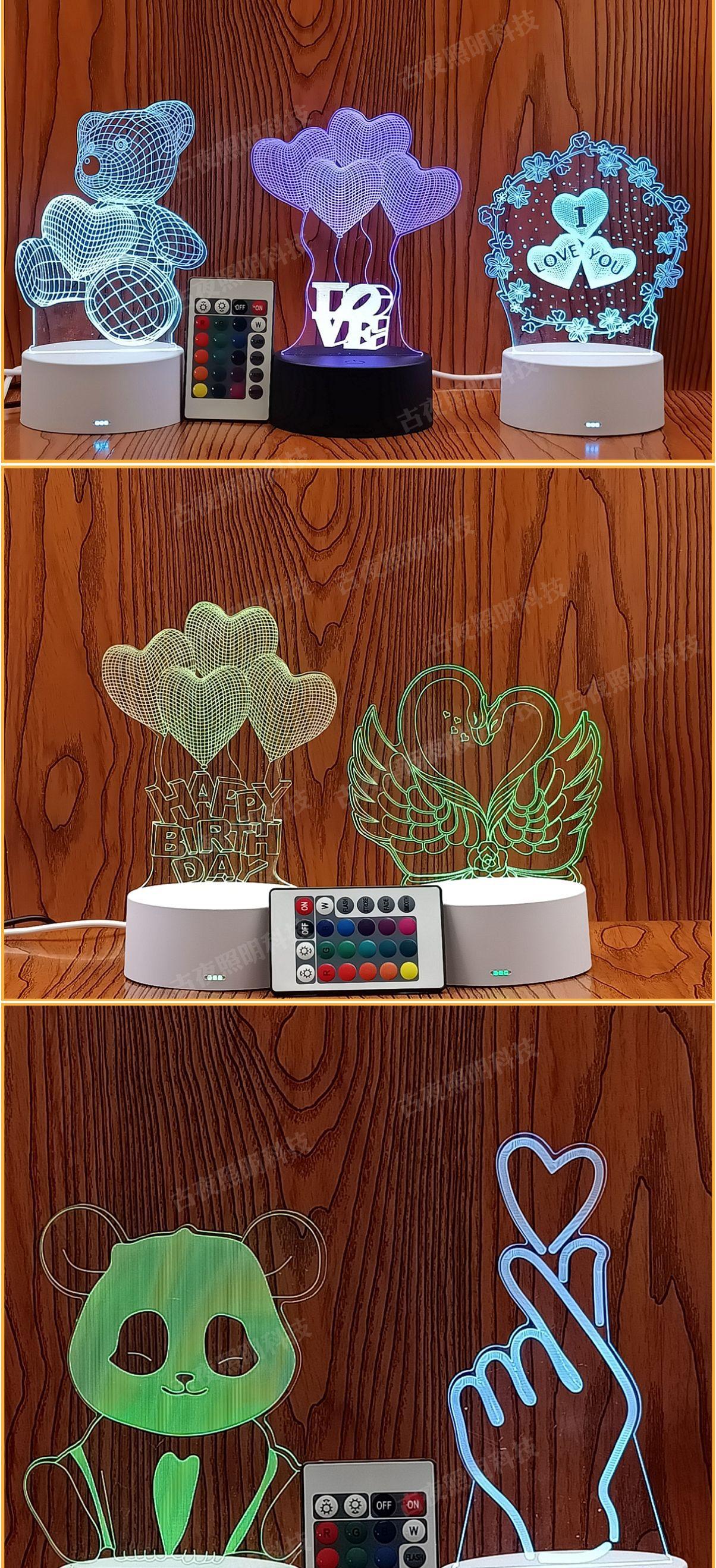 Luz Nocturna Creativa 3D Lámpara de Ambiente Carga USB Lindo Dibujo Animado Dormitorio Escritorio Mesita de Noche Compañero para Dormir Luz Nocturna Lámpara Led