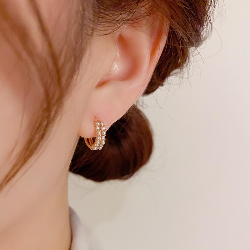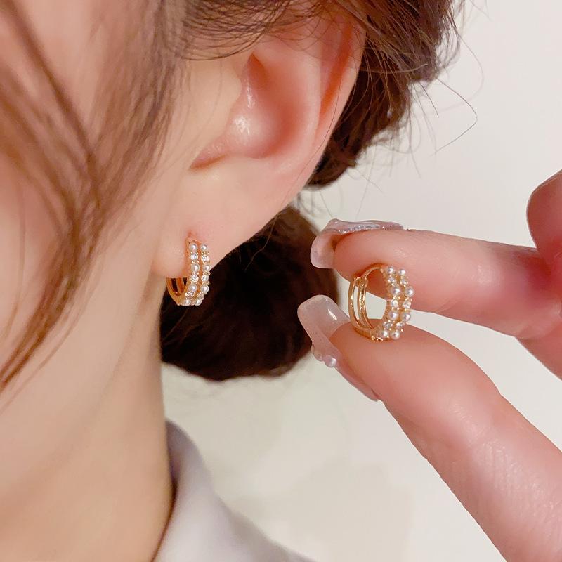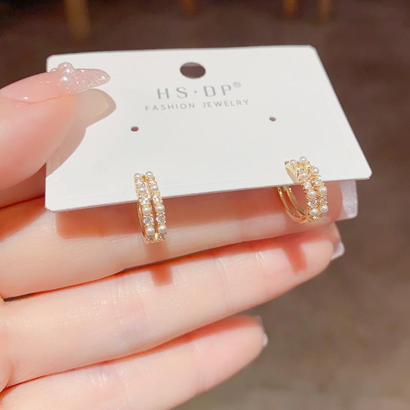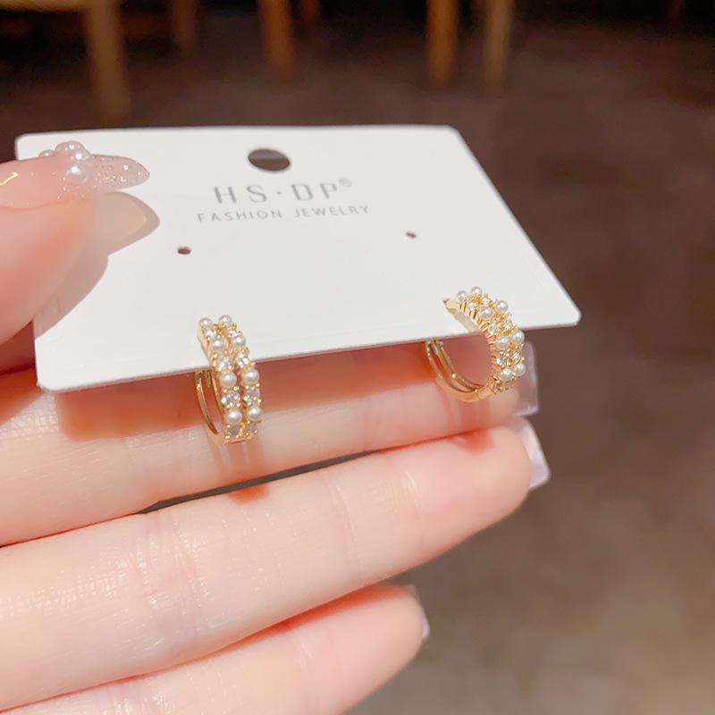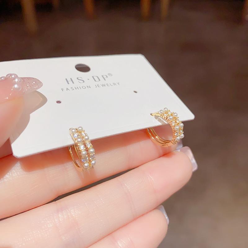 Pendientes de estilo coreano, retro, exquisitos, de doble capa, con perla, con hebilla pequeña para las orejas, diseño de nicho, con un sentido avanzado y elegante de celebridades de Internet.