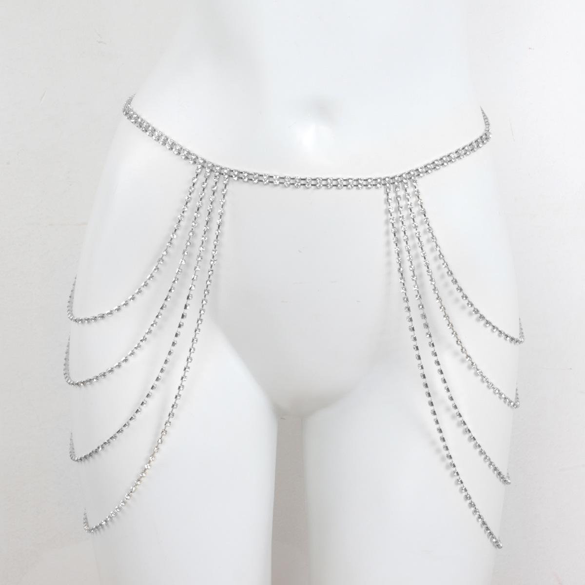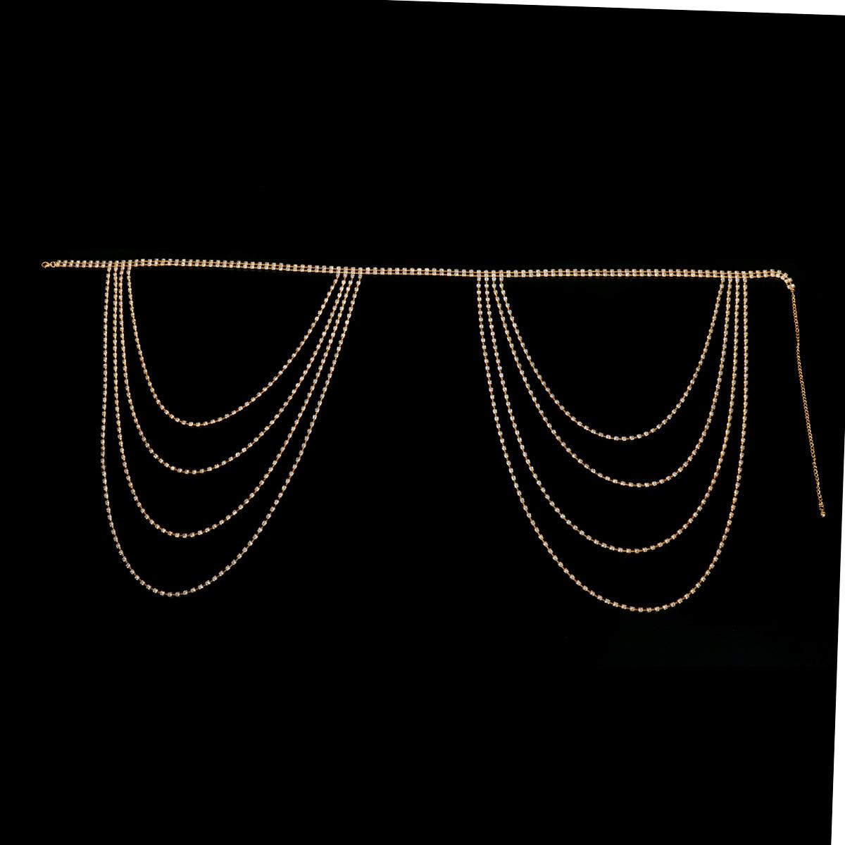 Accesorios de cadena corporal transfronterizos europeos y americanos de moda con borlas geométricas multicapa de diamantes de imitación para discoteca, playa, joyería sexy para la cintura