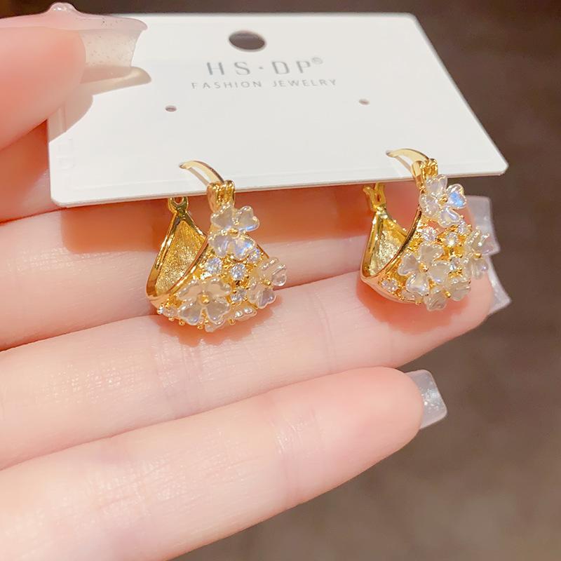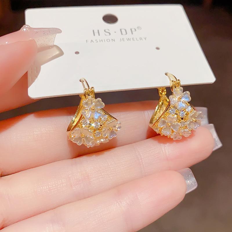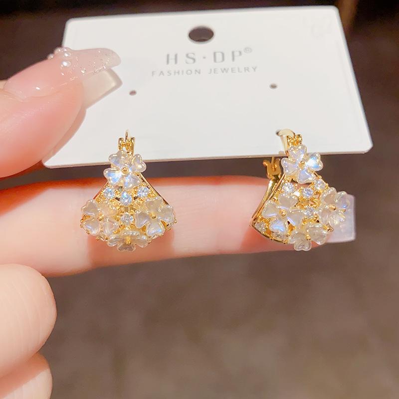 Double-sided oil drop shell flower ear buckle (thick gold plating)