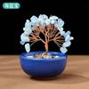 Aquamarine tea cup base crystal tree (6 tree heads)