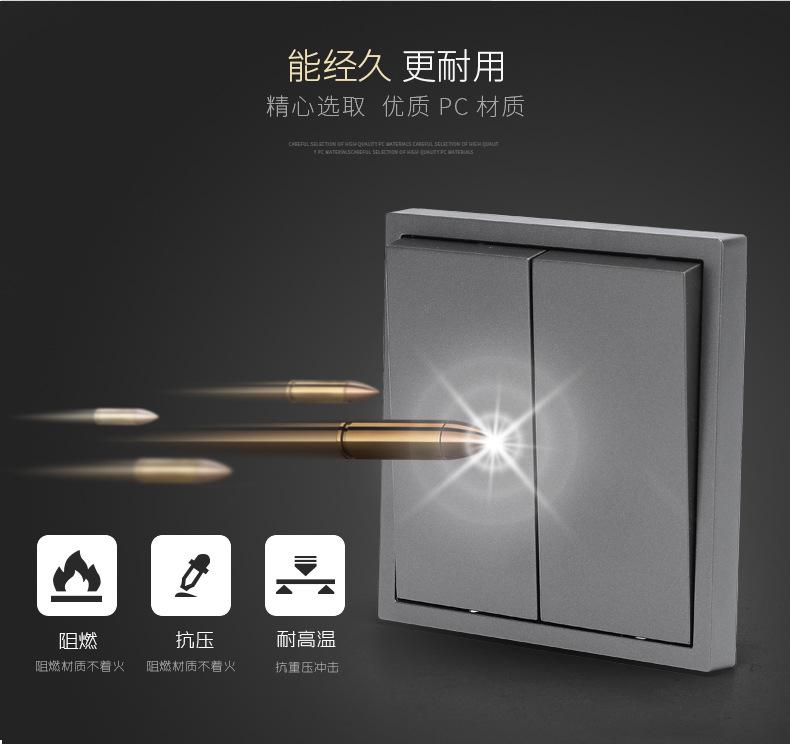 Gris Fluorescente Interruptor Doble de Dos Posiciones y Dos Vías Tipo 86 Doble Interruptor Doble Gang Panel de Toma de Corriente de Pared para Hotel Venta al por Mayor Tipo Autoblocante