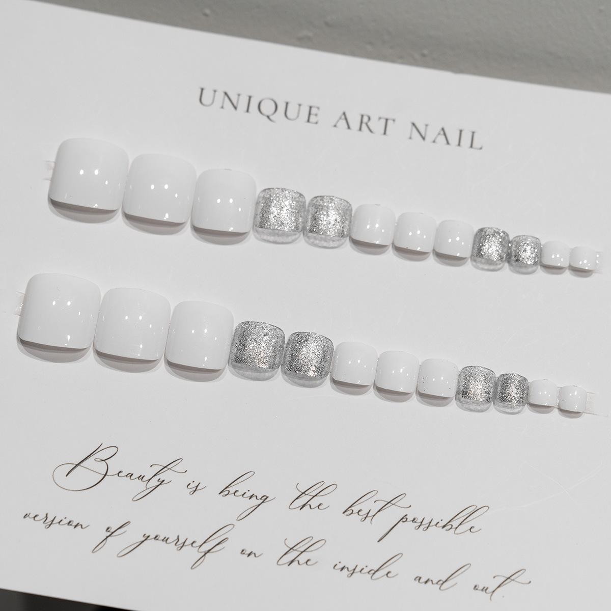 Parches Blancos con Brillo para Uñas de los Pies de Verano, Parches para Uñas Portátiles, Parches para Uñas de los Pies Terminados, Uñas que Hacen que los Pies se Vean Más Blancos, Arte de Uñas al por Mayor