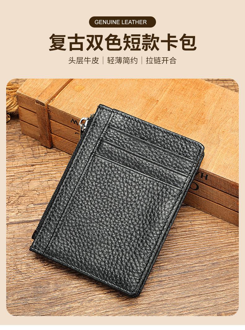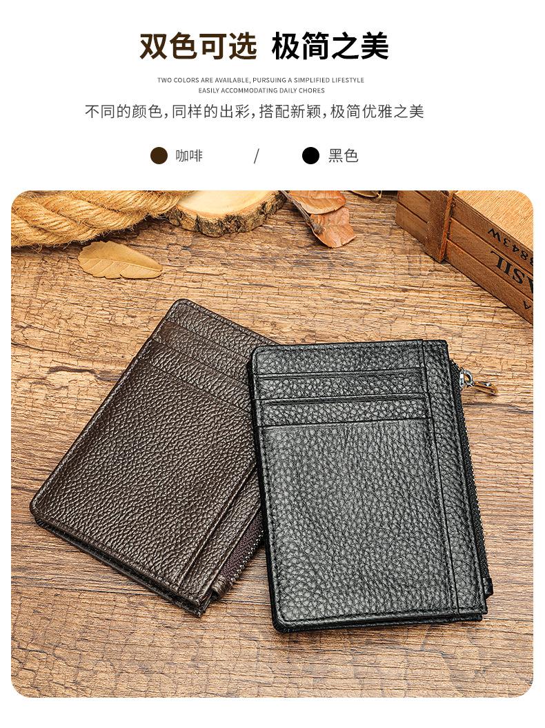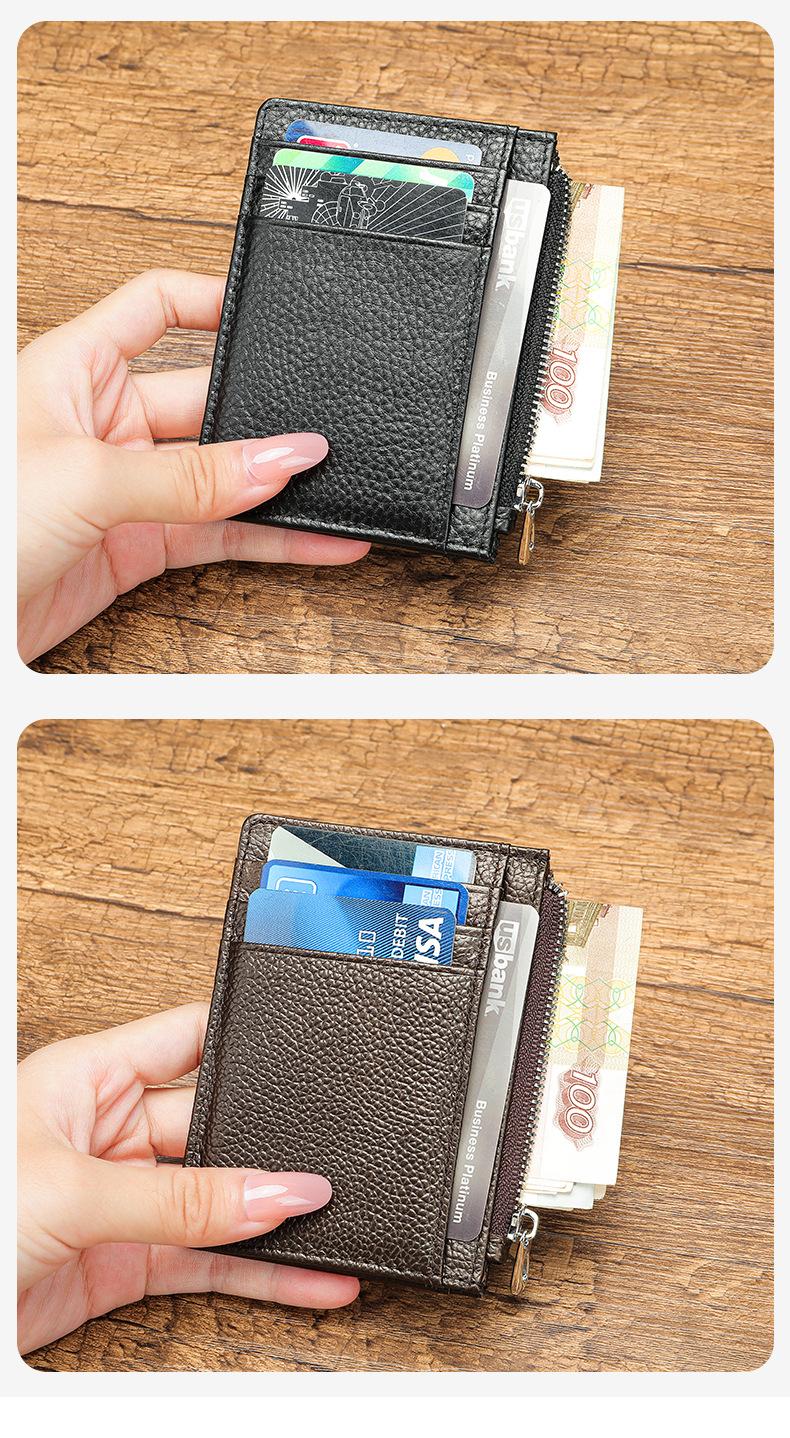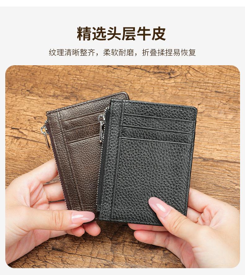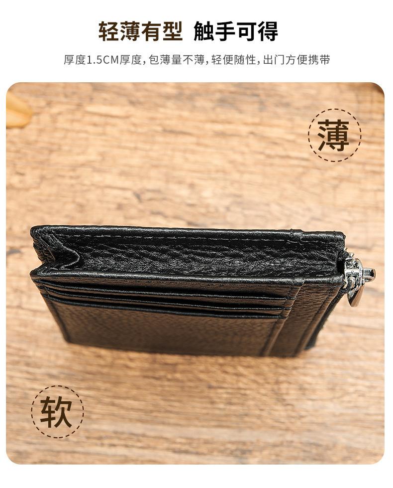 Cartera pequeña ultrafina para hombre, corta, de piel auténtica, con clip de piel de vaca, para jóvenes, vertical, suave