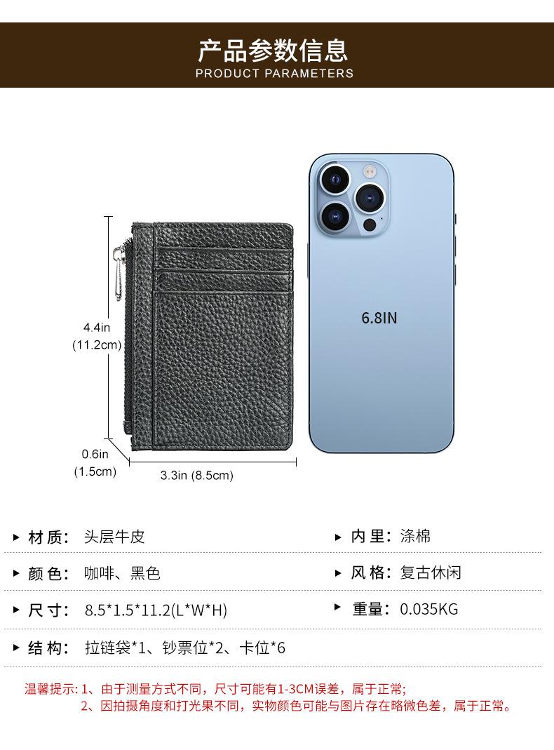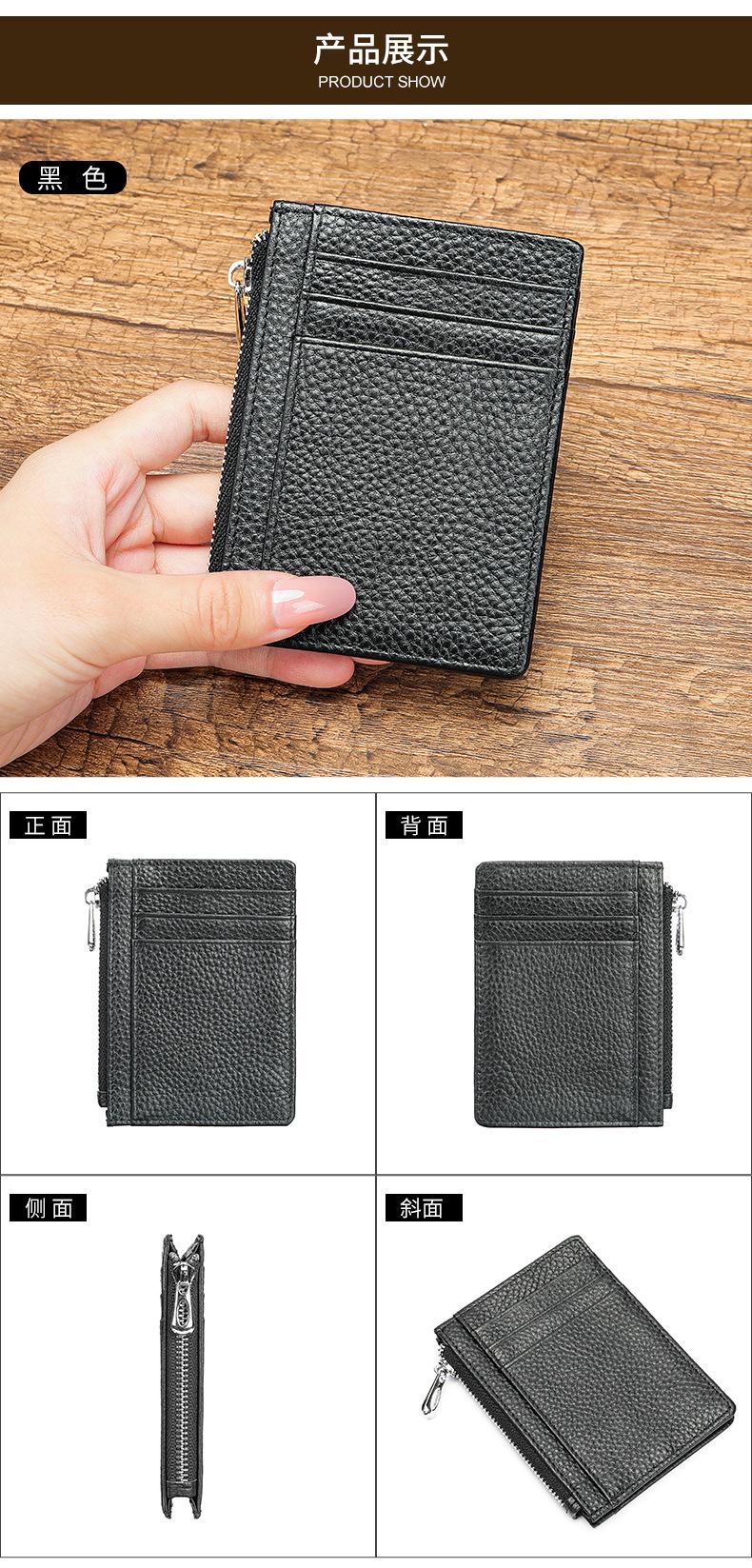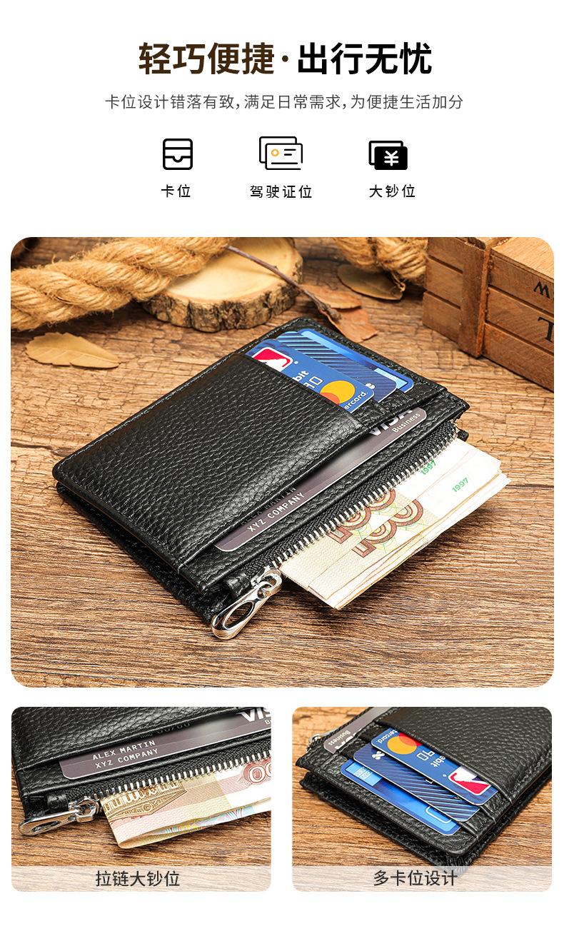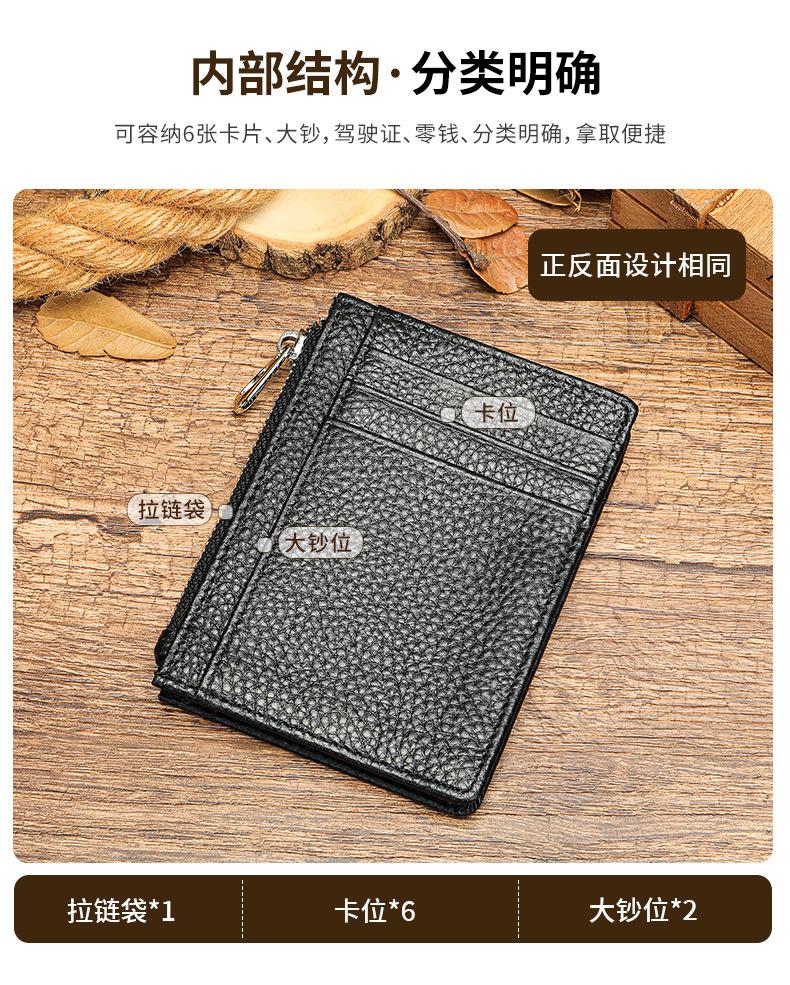 Cartera pequeña ultrafina para hombre, corta, de piel auténtica, con clip de piel de vaca, para jóvenes, vertical, suave