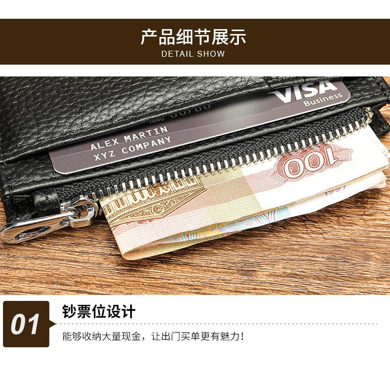 Bolso clutch largo de gran capacidad de cuero genuino, billetera larga simple de alta gama, cierre de cremallera, multifuncional, bolso clutch de cuero encerado