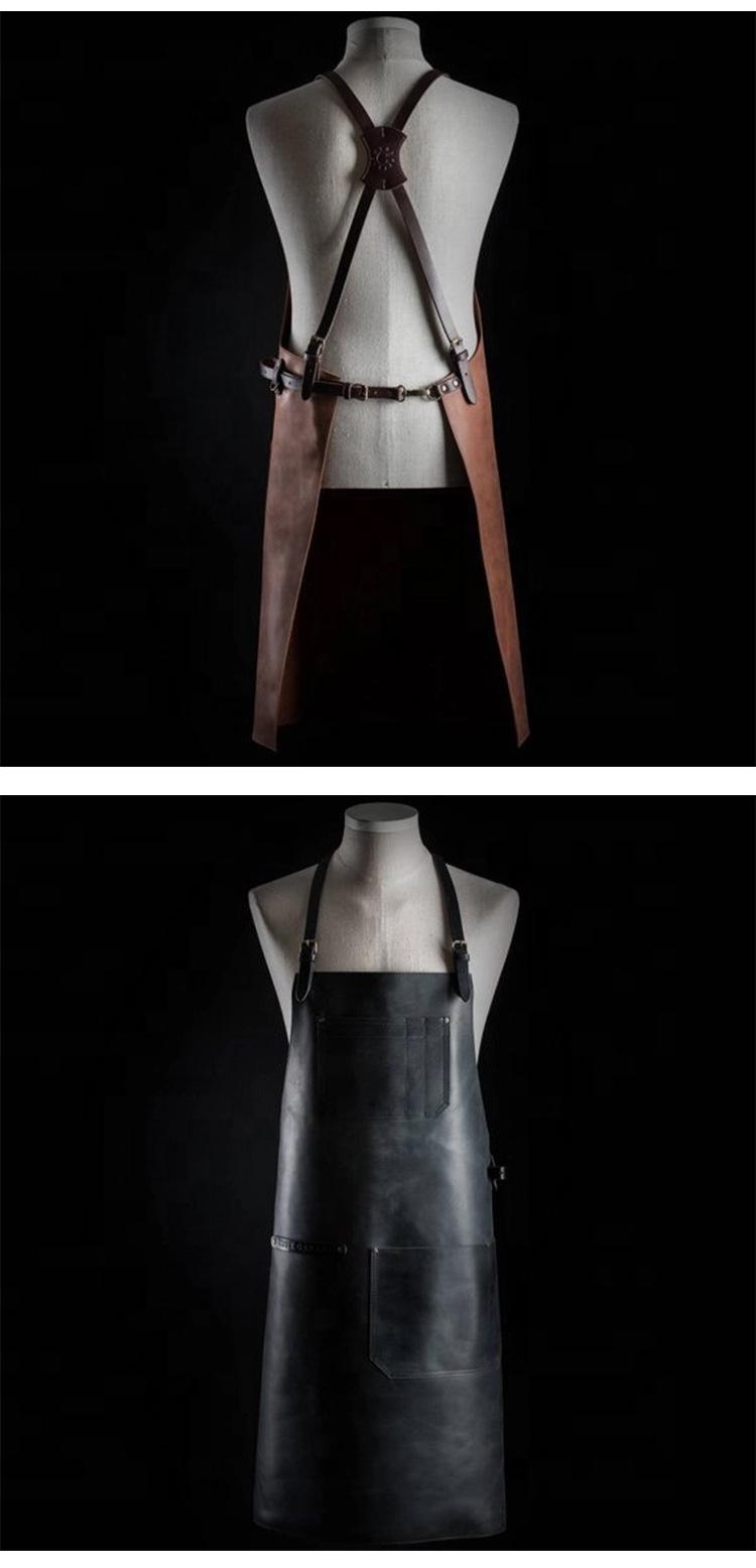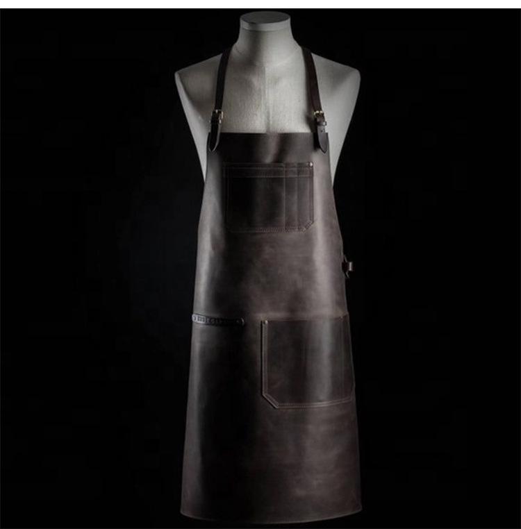 Delantal de PU de moda transfronteriza con estampado de barbacoa, cocina, chef, repostería, delantal de cuero práctico con múltiples bolsillos y logotipo impreso