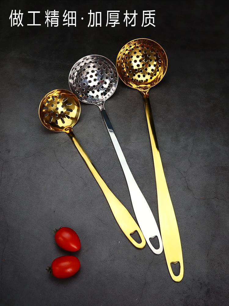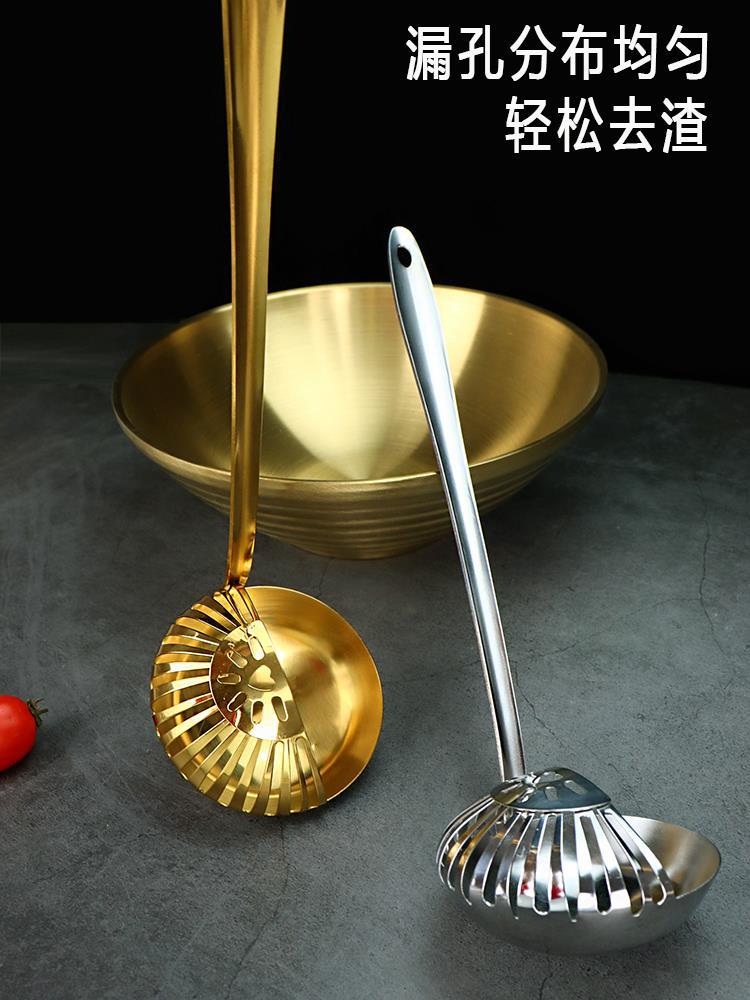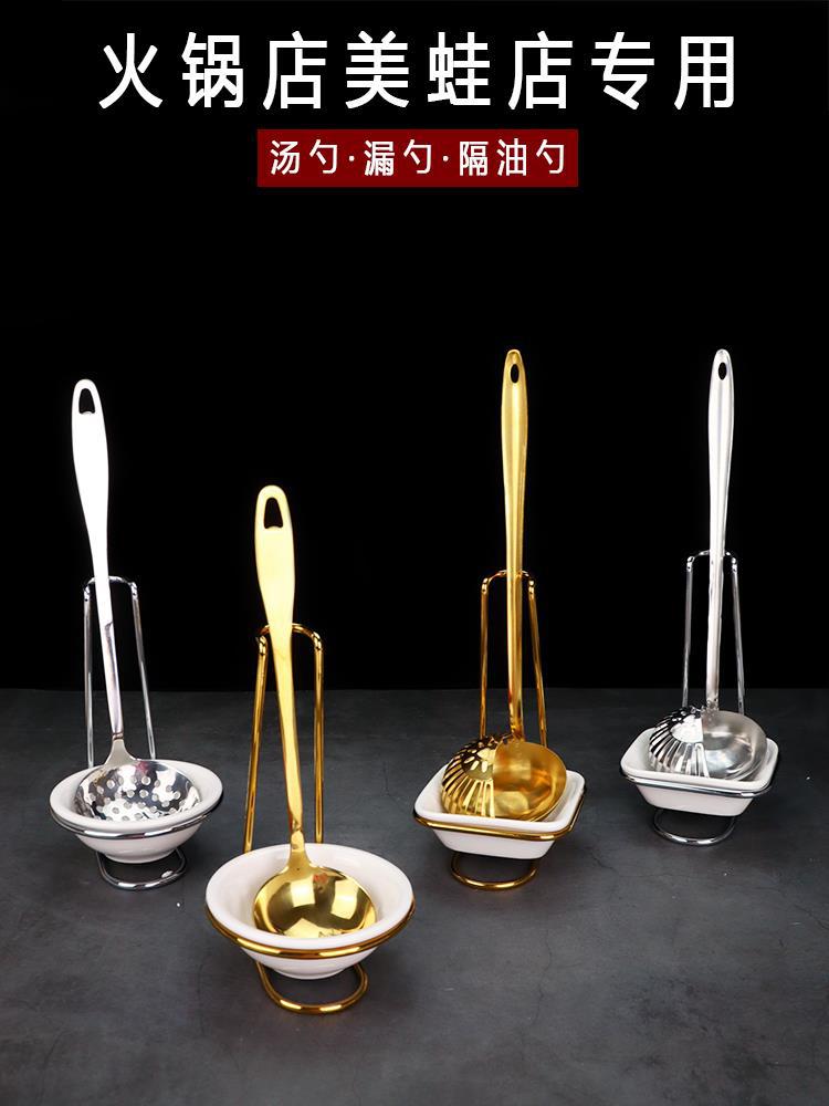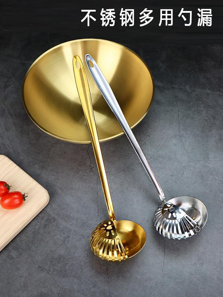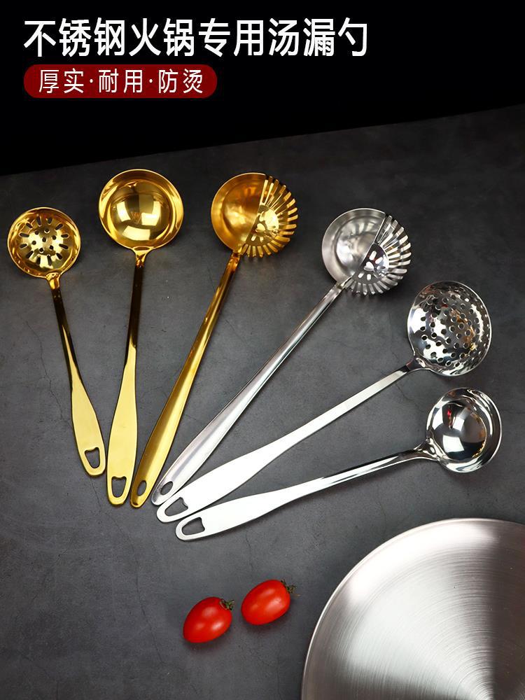 Cuchara de sopa de acero inoxidable espesada, colador, cuchara para olla caliente, cuchara para restaurante con cabeza de rana y pez, cuchara multiusos especial, mango largo, tamaño grande para el hogar