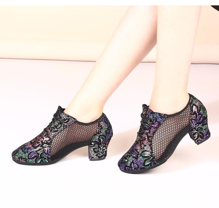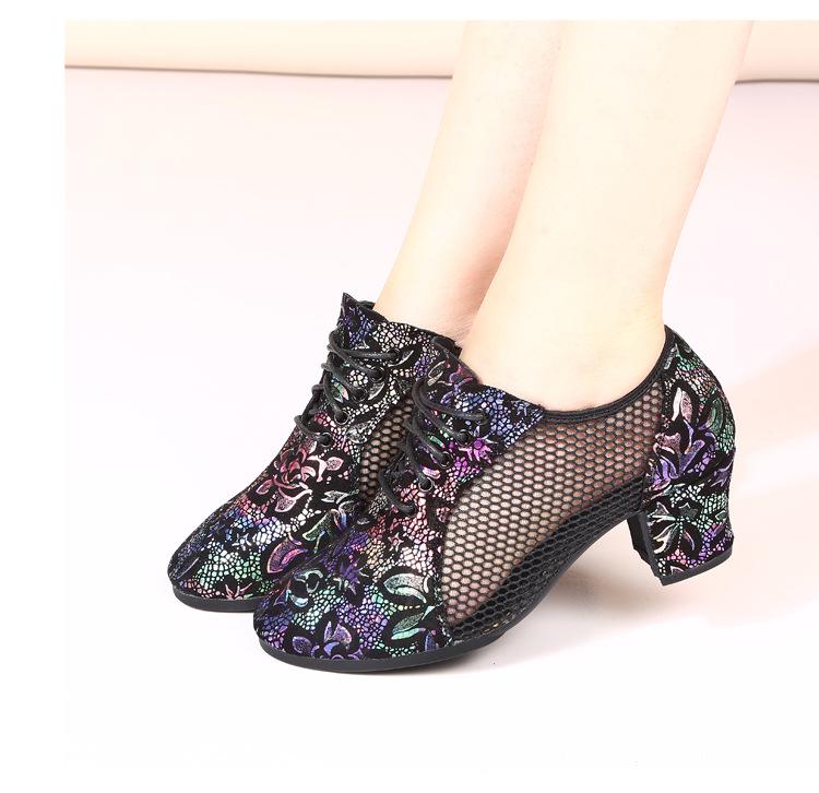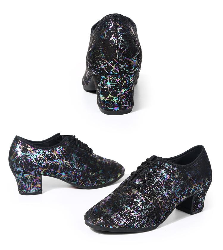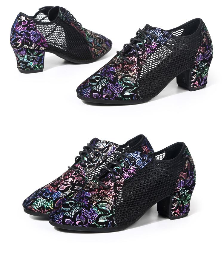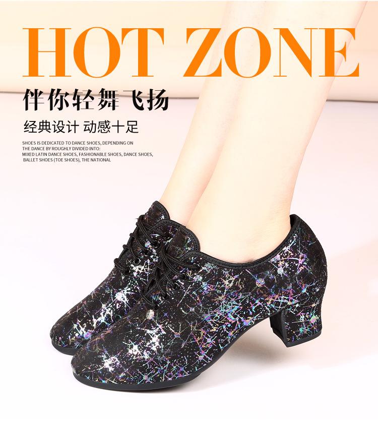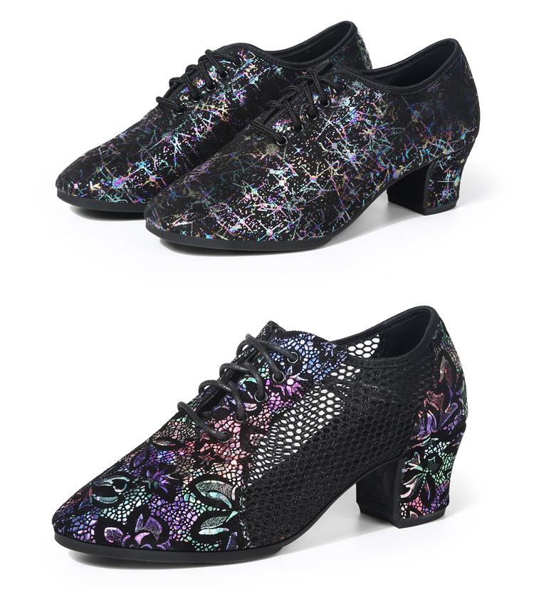 Nuevos Zapatos de Baile Latino Estampados Coloridos Zapatos de Baile Corporal Tacón Medio Sapien Dance Baile de Salón Moderno Zapatos de Baile Cuadrado