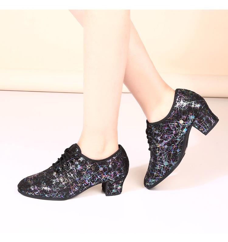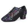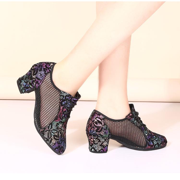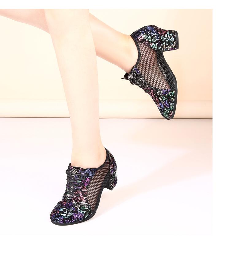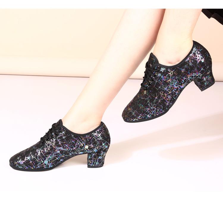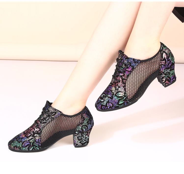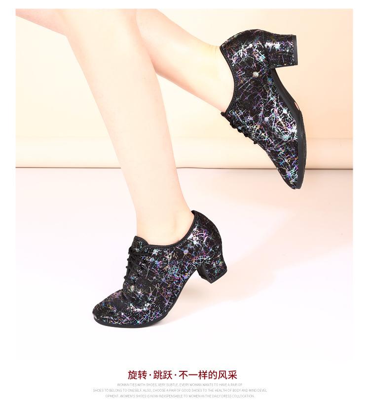 Nuevos Zapatos de Baile Latino Estampados Coloridos Zapatos de Baile Corporal Tacón Medio Sapien Dance Baile de Salón Moderno Zapatos de Baile Cuadrado