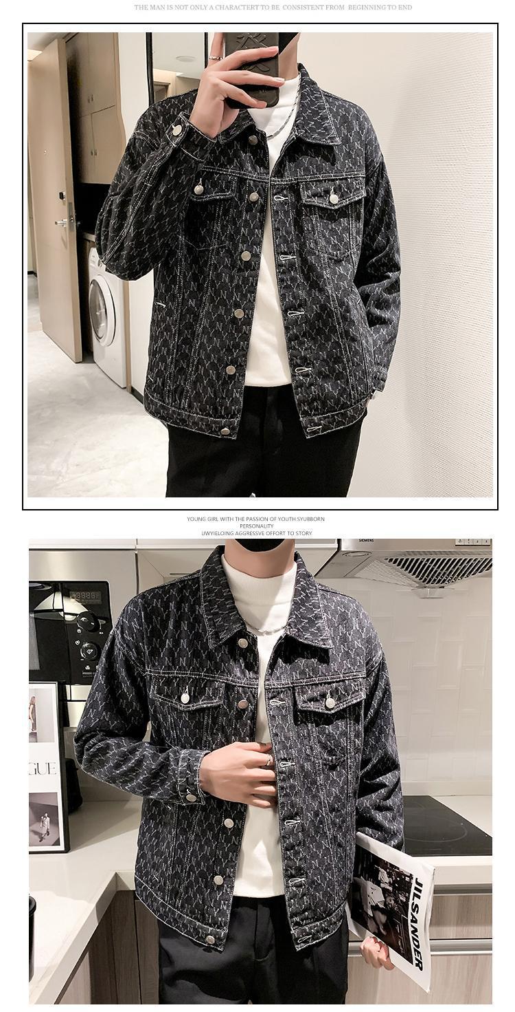 Chaqueta vaquera de marca de moda de primavera y otoño para hombre, chaqueta de trabajo con solapa, chaqueta informal a cuadros a juego con colores para hombre