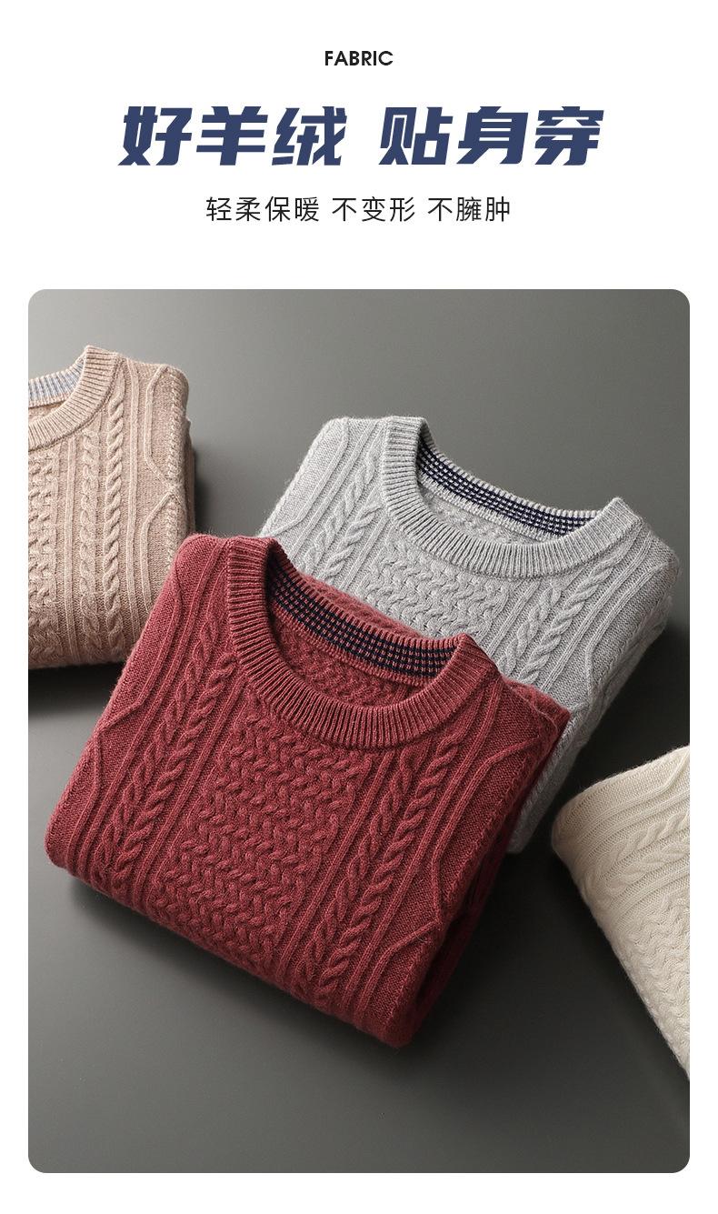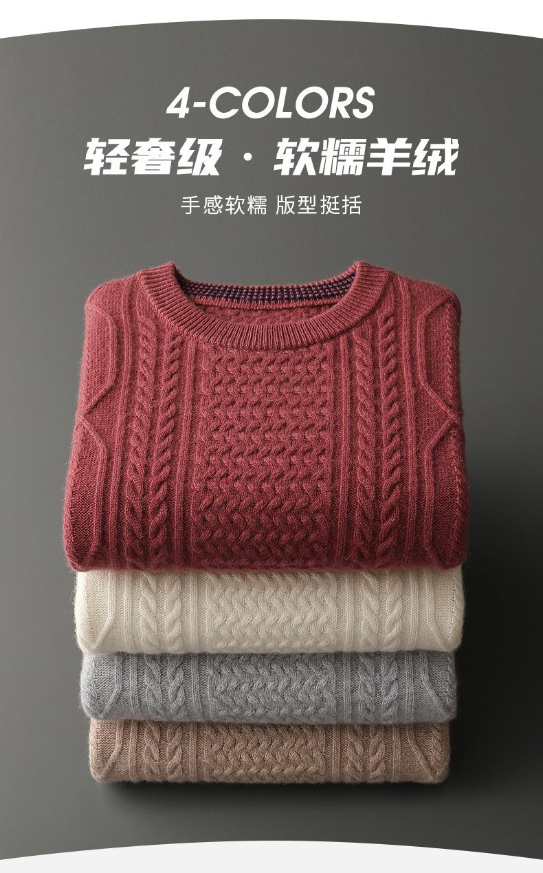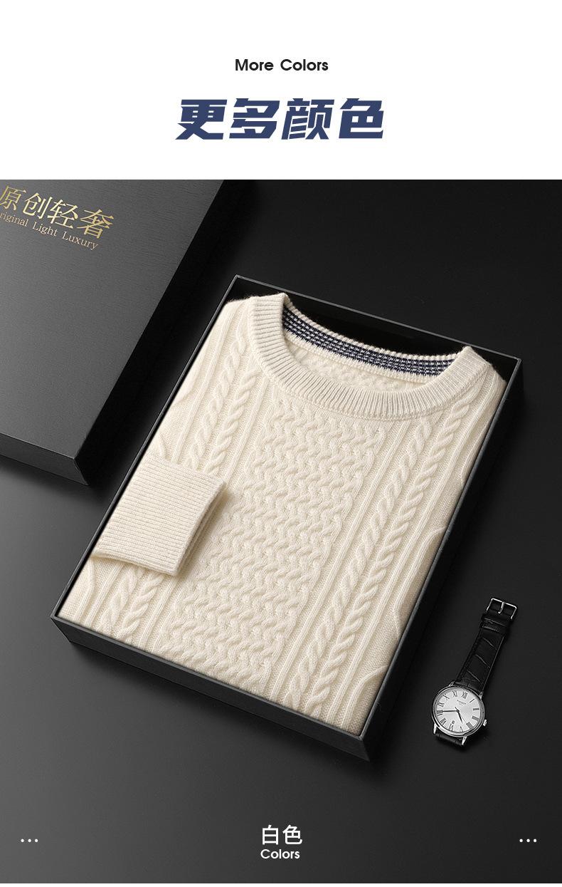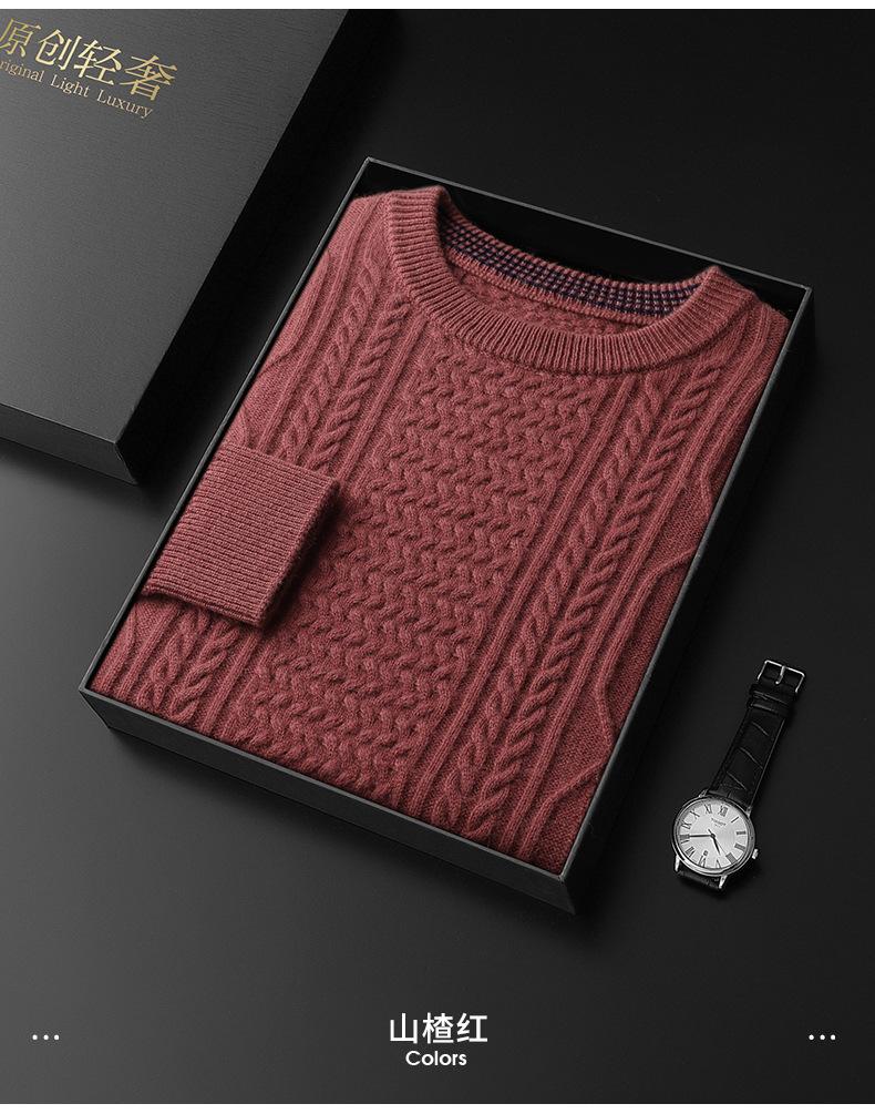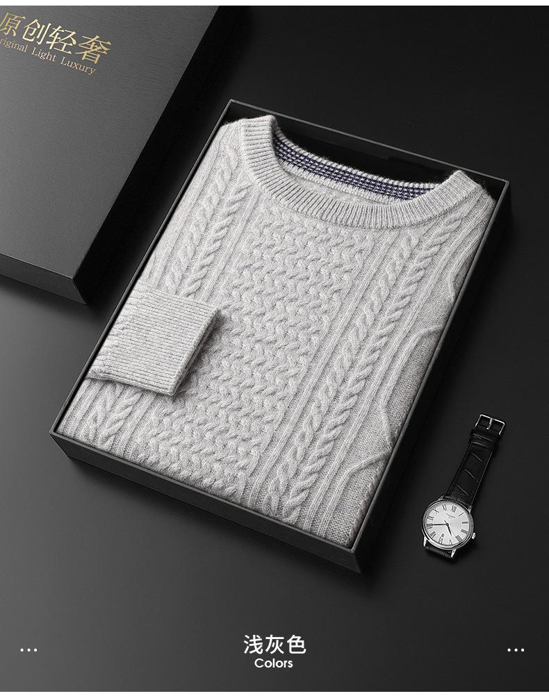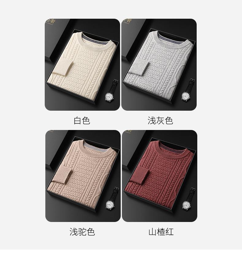 Suéter de cachemira grueso para hombre, jersey de cuello redondo, suéter de punto de cachemira pura de otoño e invierno, camisa de fondo, suéter de cachemira para hombre