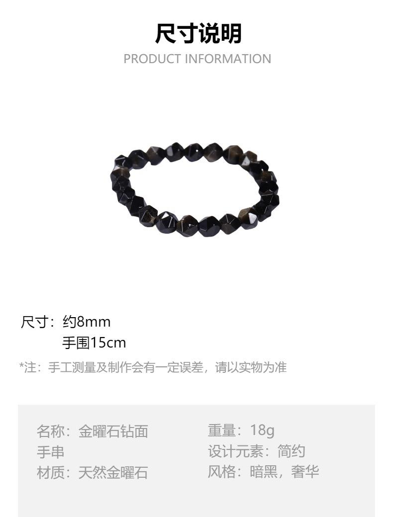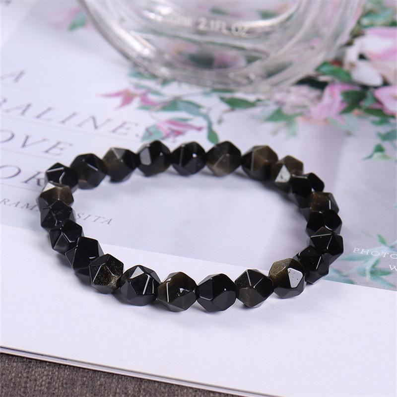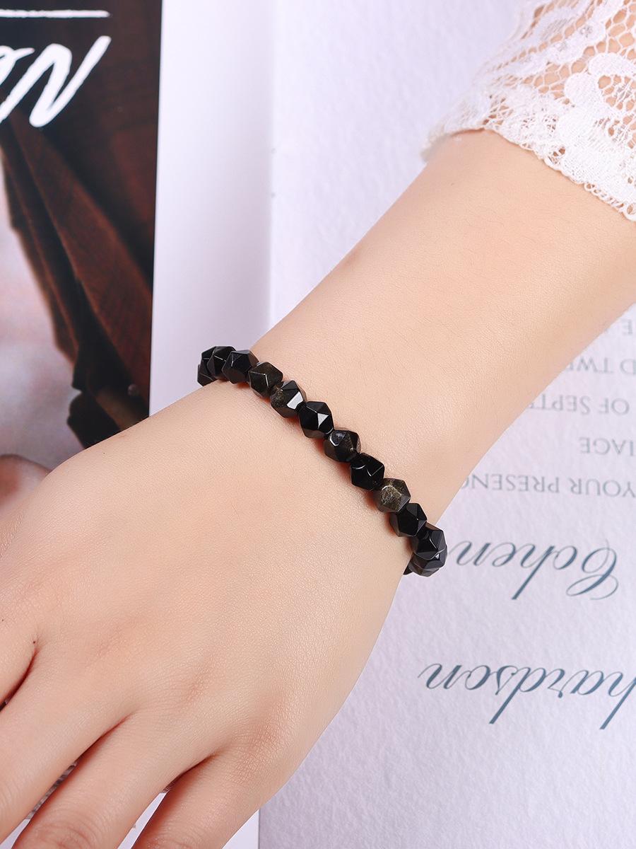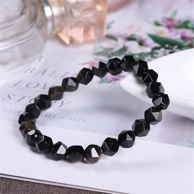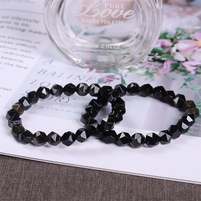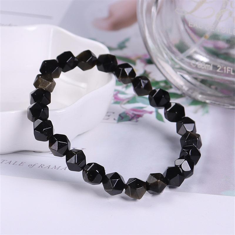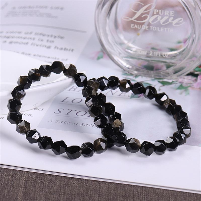 Pulsera de obsidiana dorada natural, moderna, simple, cuentas de obsidiana oscura con superficie de diamante, pulsera de cristal, modelos de pareja para hombre y mujer, para novia