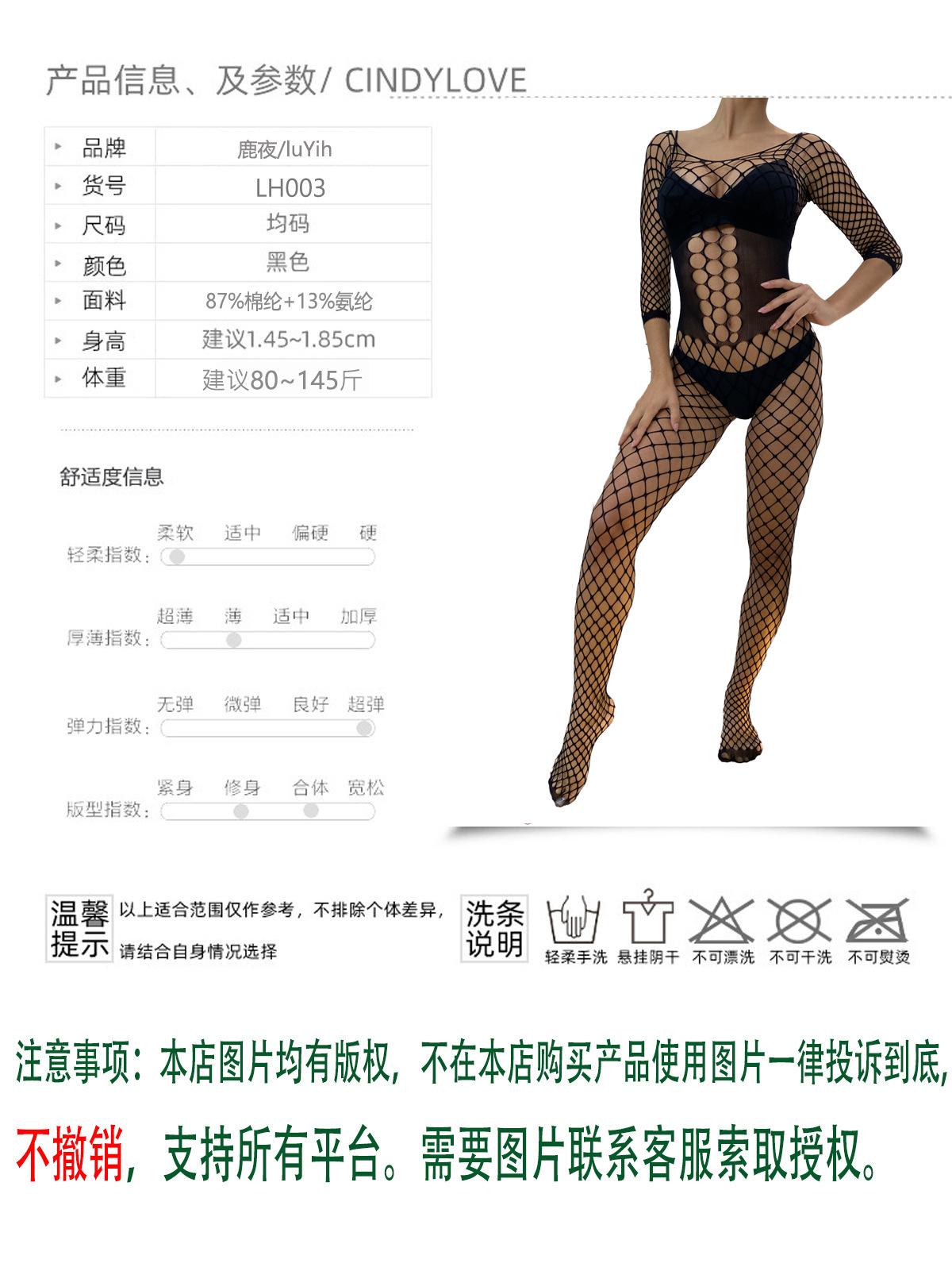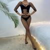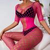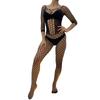 Celebridad de Internet europea y americana con red de pesca, lencería sexual de una pieza abierta, uniforme de tentación sexy negro de una pieza para mujer