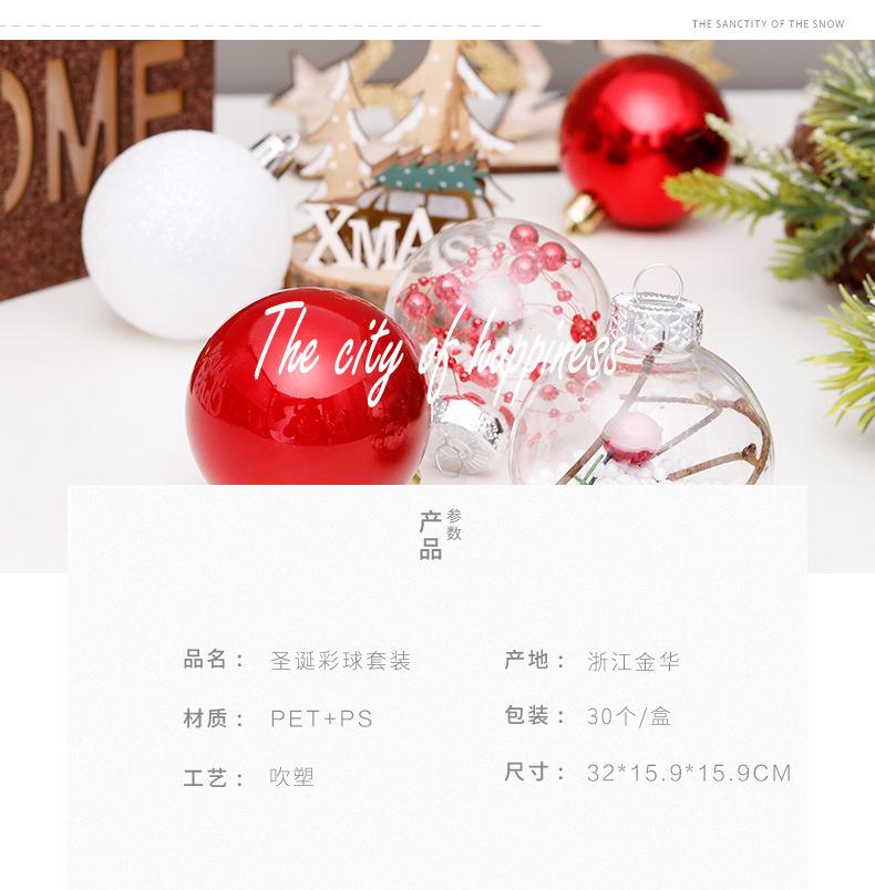 Decoraciones navideñas transfronterizas 6cm/30 piezas bola transparente roja y blanca traje de bola navideña colgante para árbol de Navidad