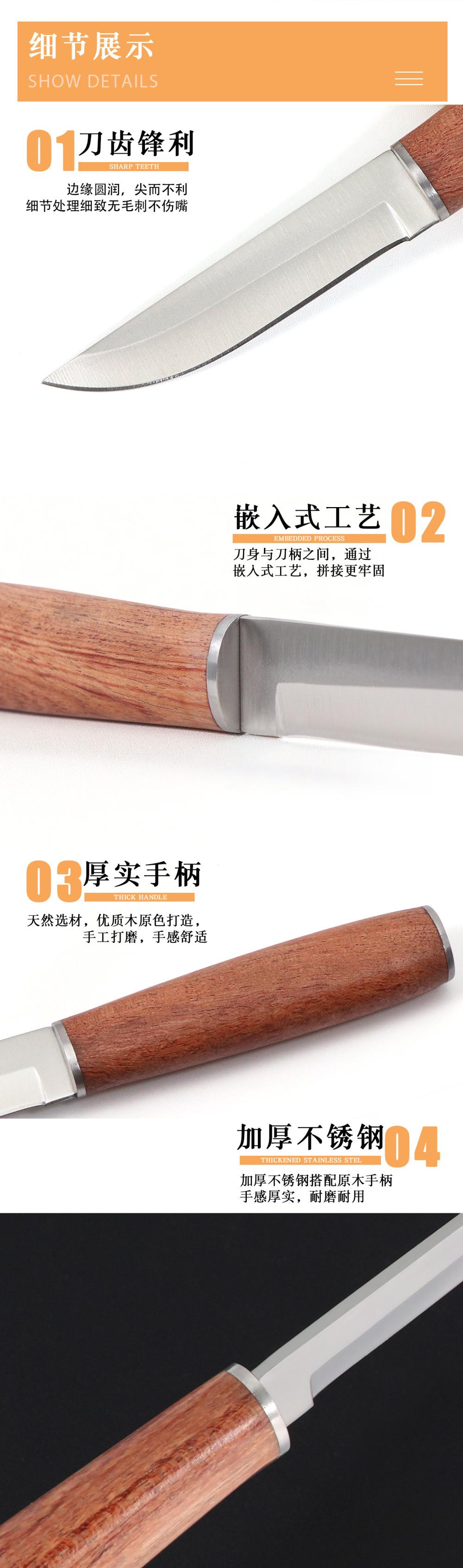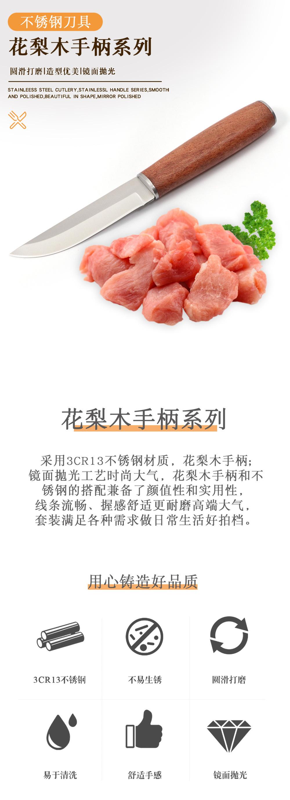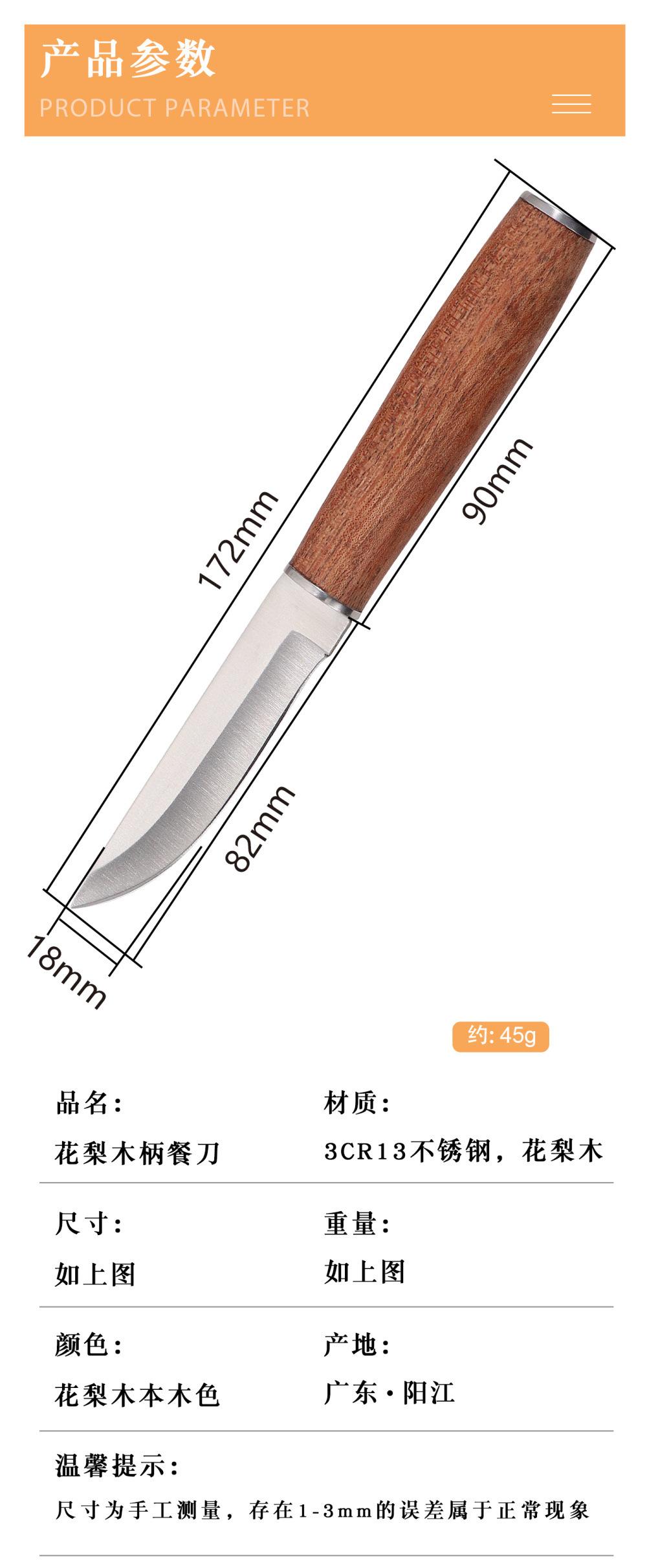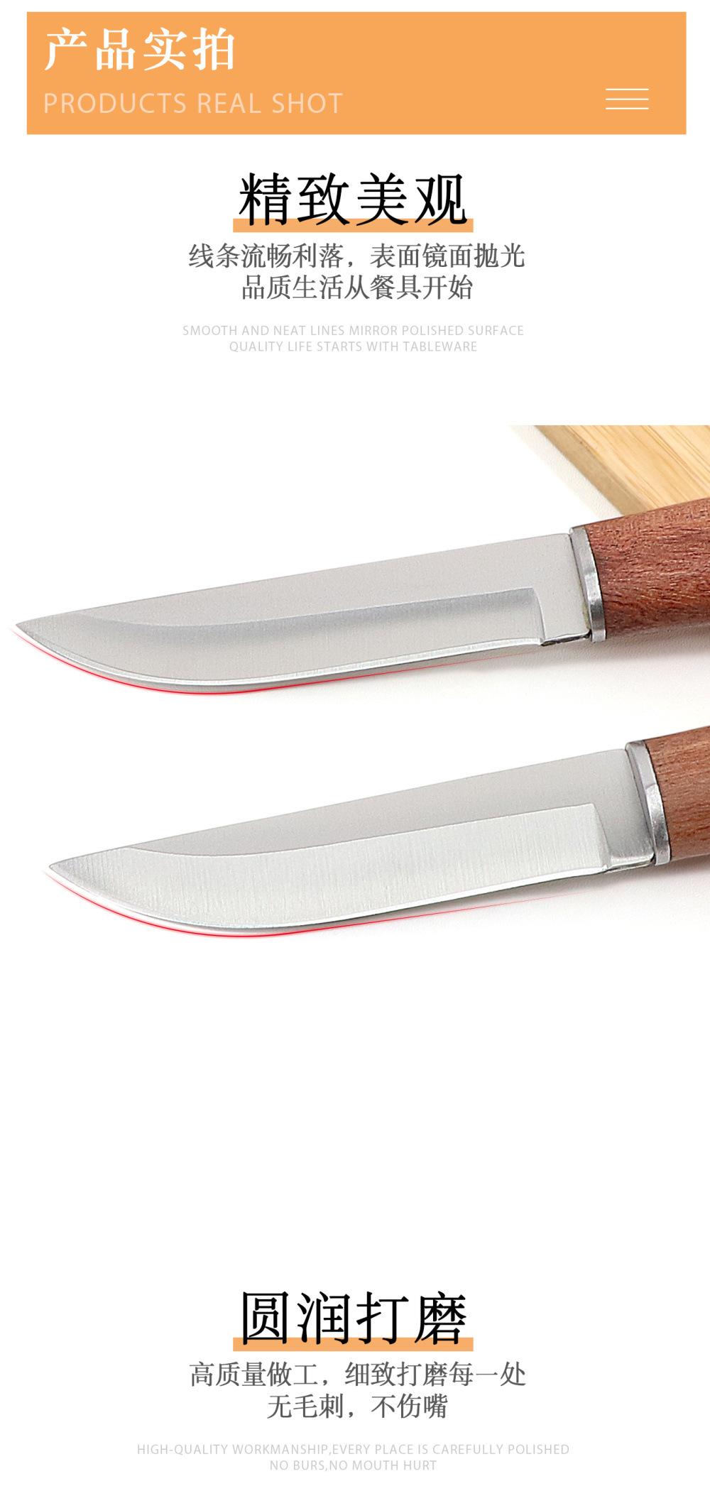 Cuchillo de carne con mango de palisandro, cuchillo pequeño de acero inoxidable, cuchillo multiusos, vajilla doméstica, cuchillo, tenedor, cuchillo de fruta con mango de madera.