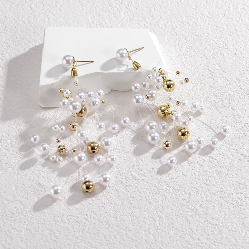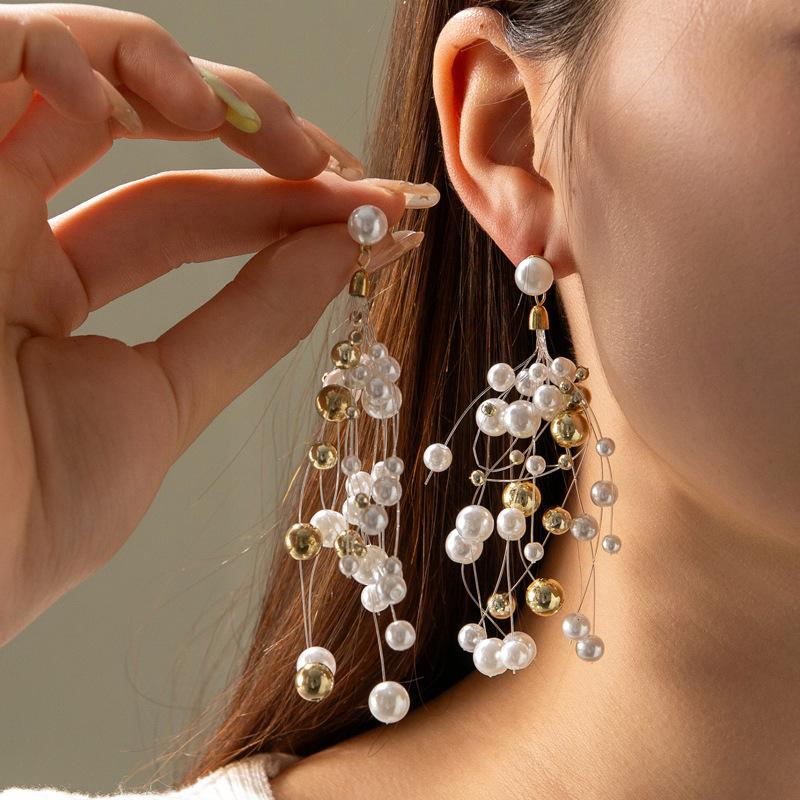 Pendientes de perlas con borlas irregulares con diseño de nicho, venta al por mayor, elegantes pendientes de mujer, entrega de una sola pieza