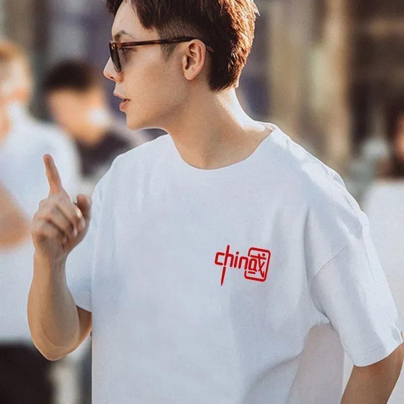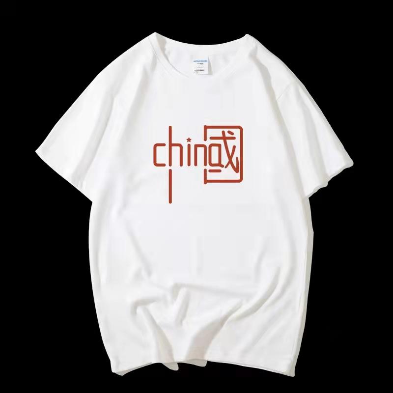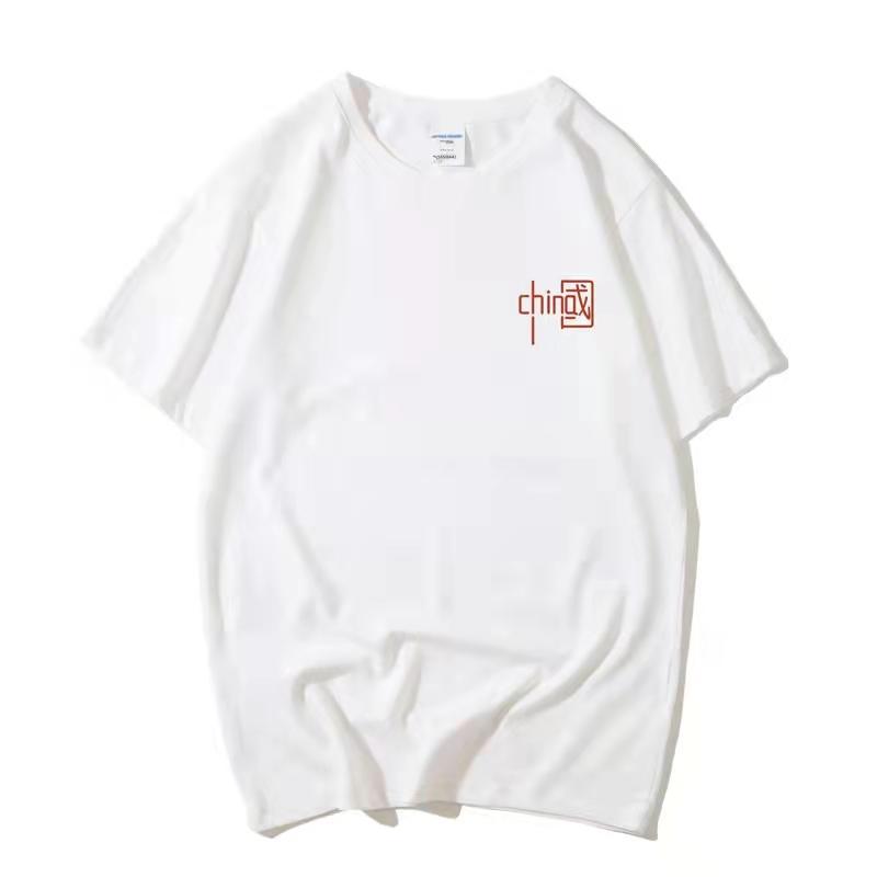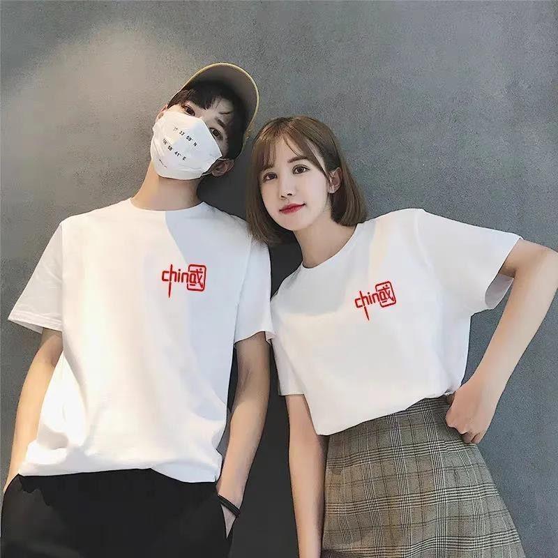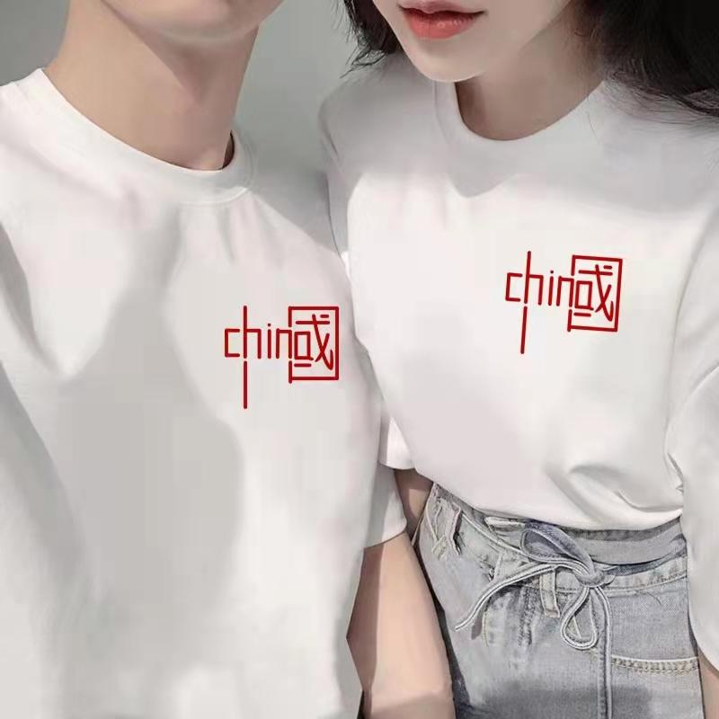 Playeras Unisex de Pareja Estilo Chino 2024 Verano Nuevo Holgadas Cuello Redondo Manga Corta Algodón Puro Ins