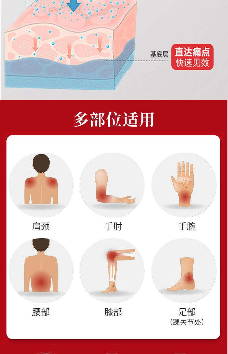 It is suitable for the application treatment of pain caused by neck, shoulder, waist, leg joint and soft tissue injury.