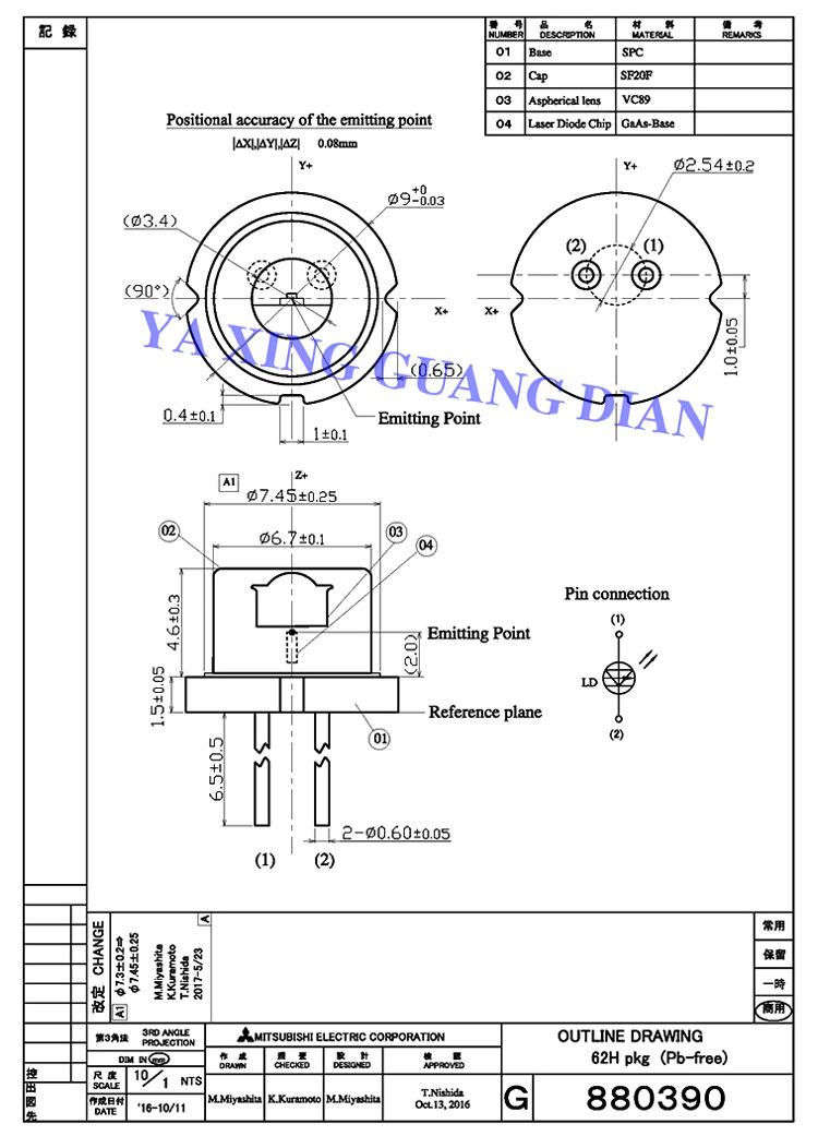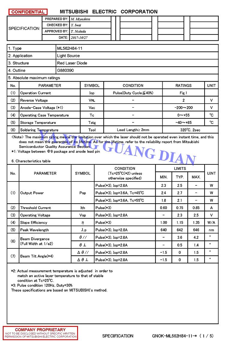 Diodo láser rojo de tres haces Mitsubishi ML562H 84 638 nm 2,5 W con lente TO5 de 9 mm