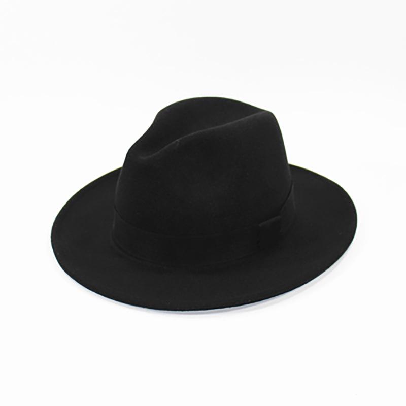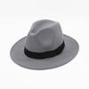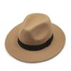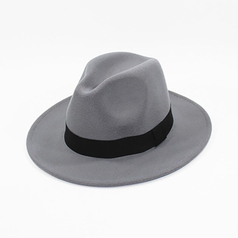 Sombrero de jazz con cinta negra estilo europeo y americano para niños, sombrero grande de lana retro británico de azufre, sombrero de fieltro de moda para otoño e invierno para hombres y parejas.