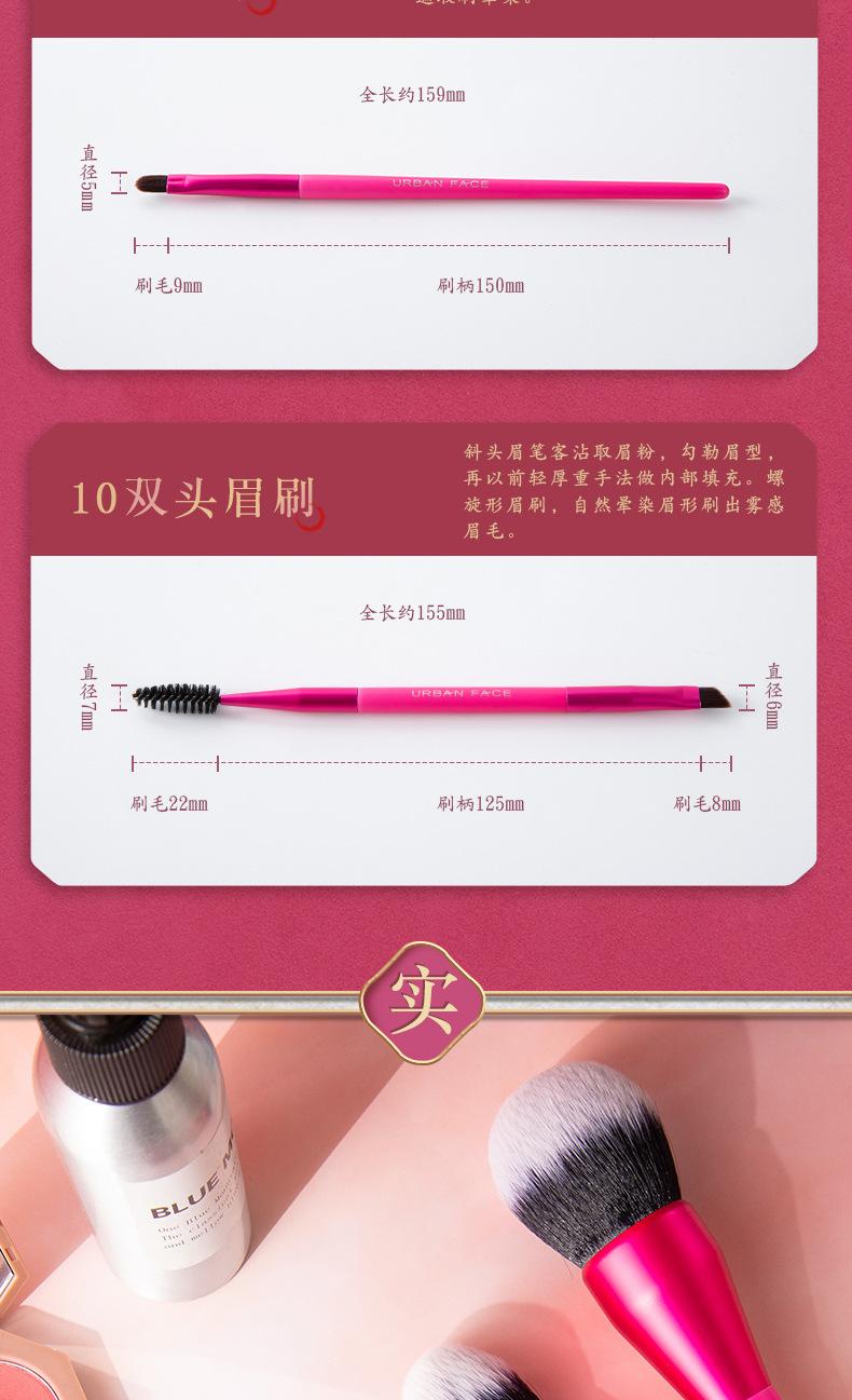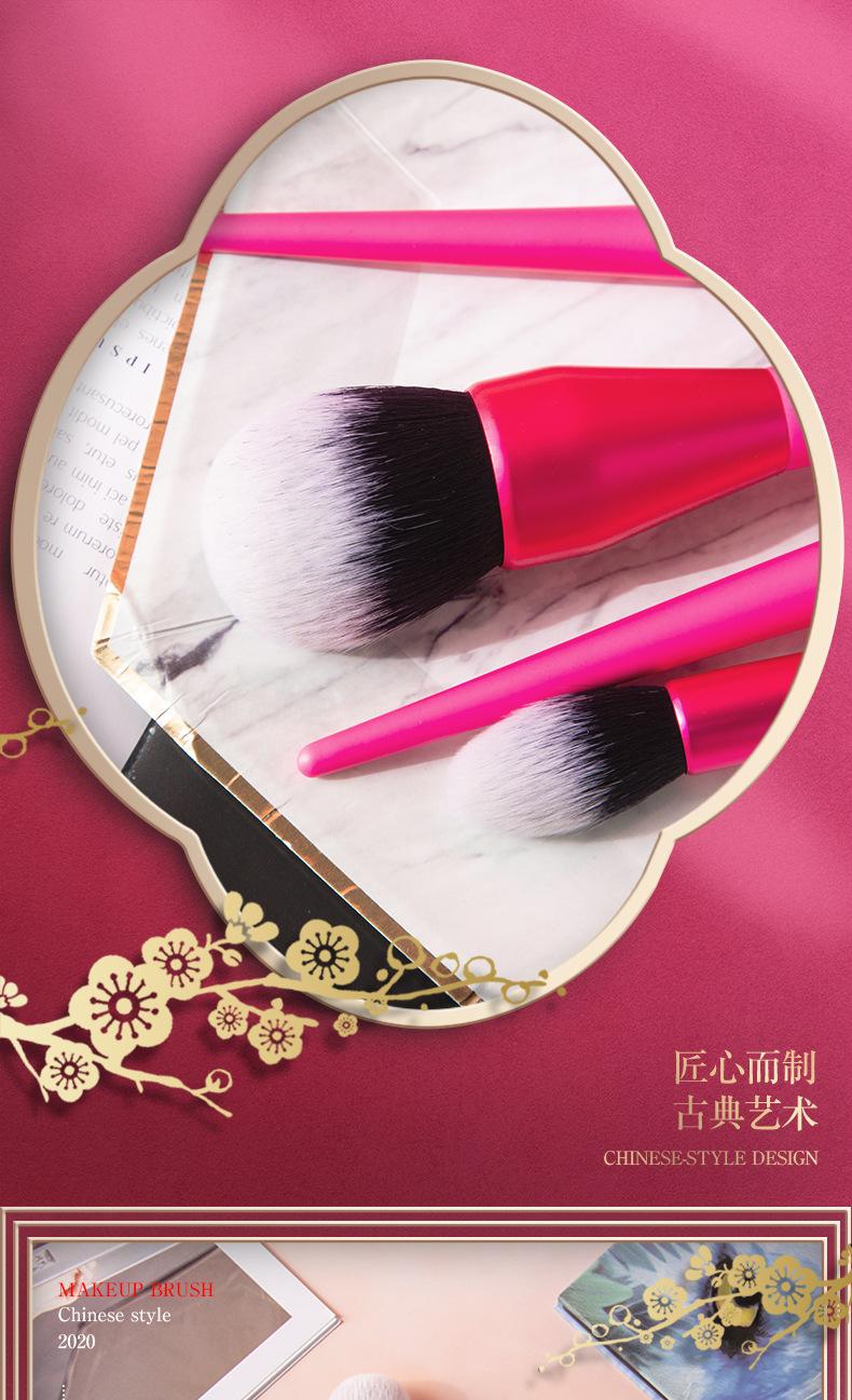 Rose red 10-piece set (rose), Petal powder brush (white + pink hair), Rose petal powder brush (black with white peak hair)