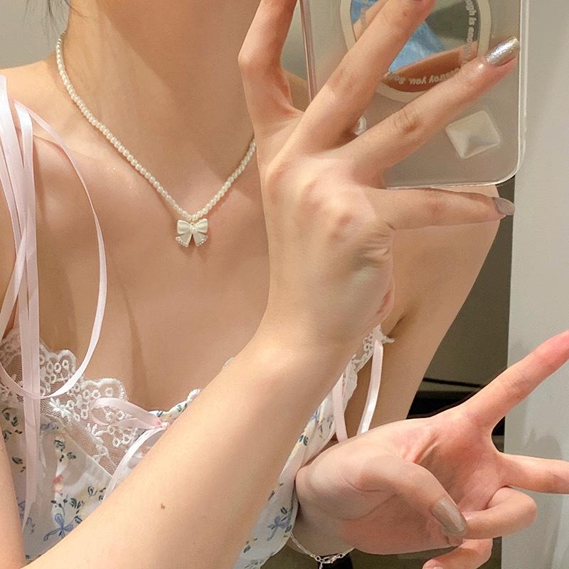Collar de lazo de perlas para mujer, diseño de alta gama de verano, cadena de clavícula con cuentas de nicho, accesorios para collar