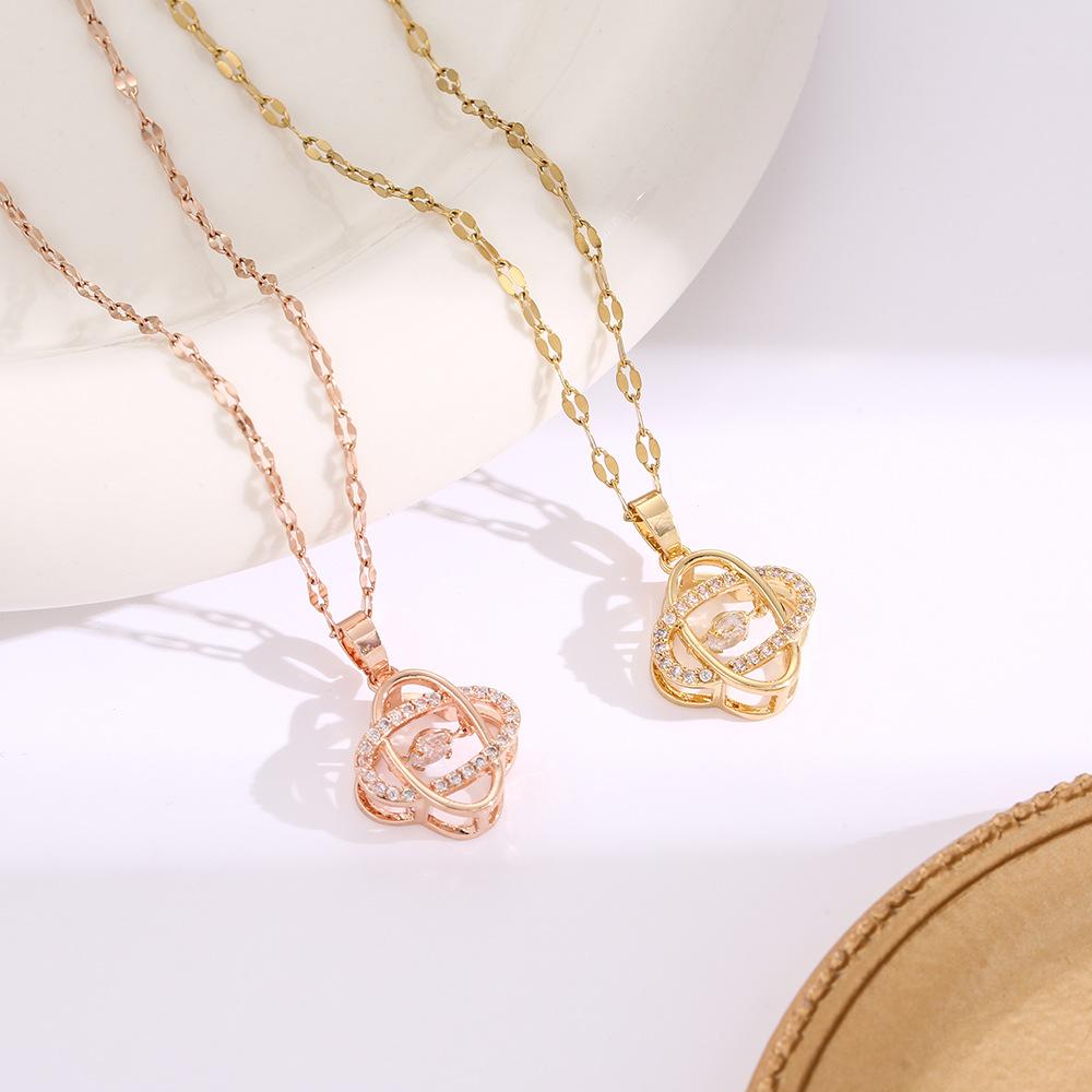 Nuevo collar de acero de titanio con flor de cuatro hojas, elegante, con incrustaciones de circonita micro bañadas en oro y estilo coreano, colgante de corazón palpitante de moda de celebridades de Internet