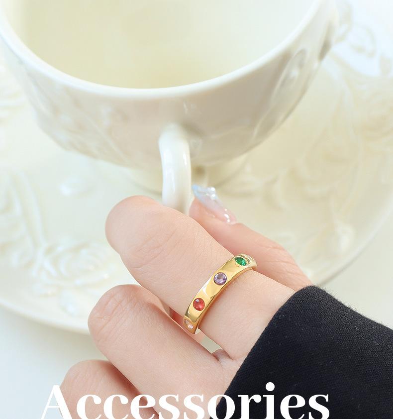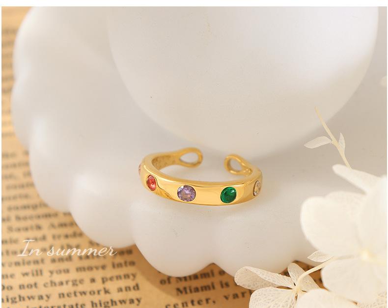Anillo Estilo Ins Europeo y Americano para Mujer Nuevo Trendy Diseño Nicho que No se Desvanece Circonita Colorida Anillo Abierto para Dedo Índice