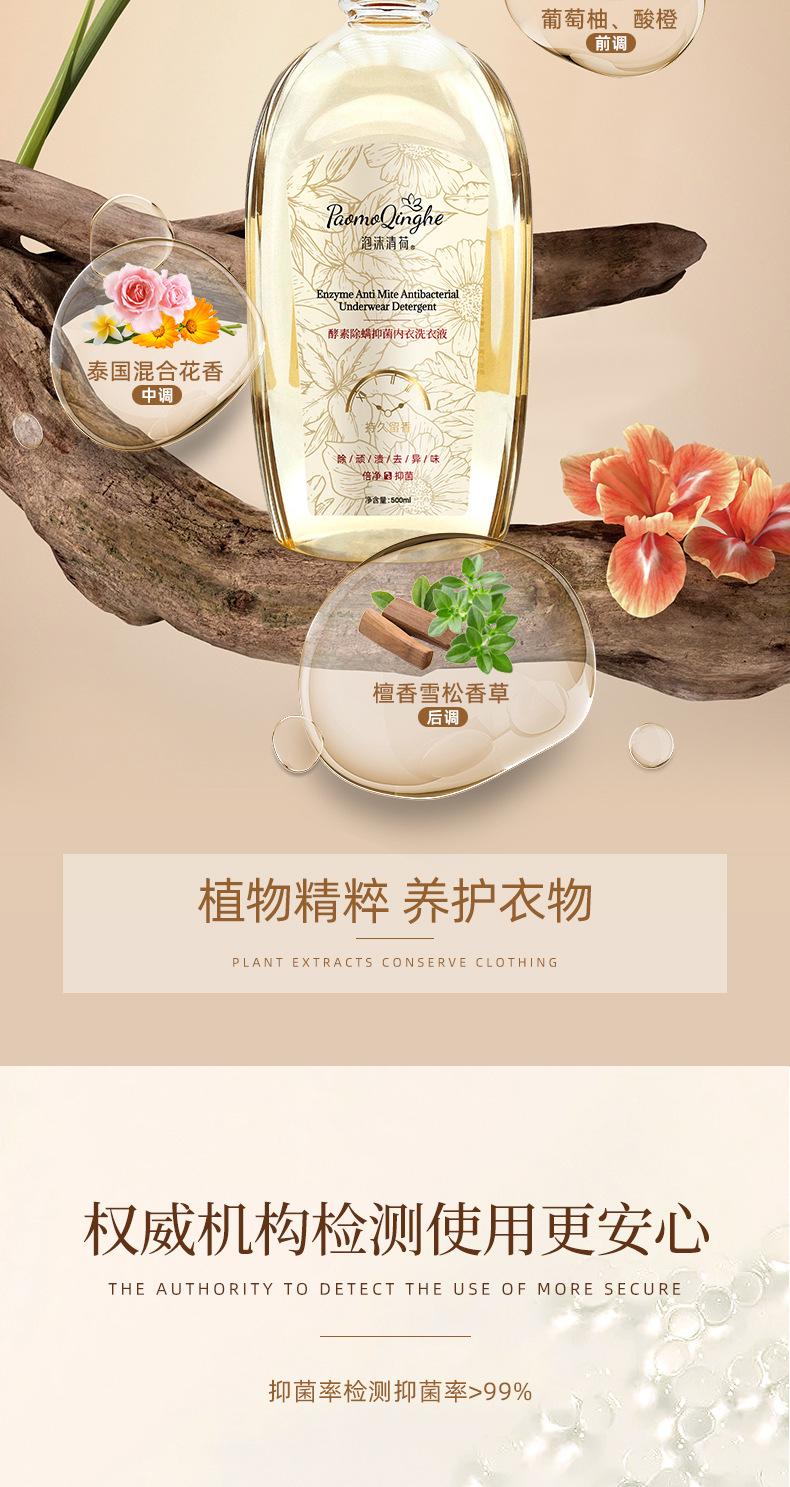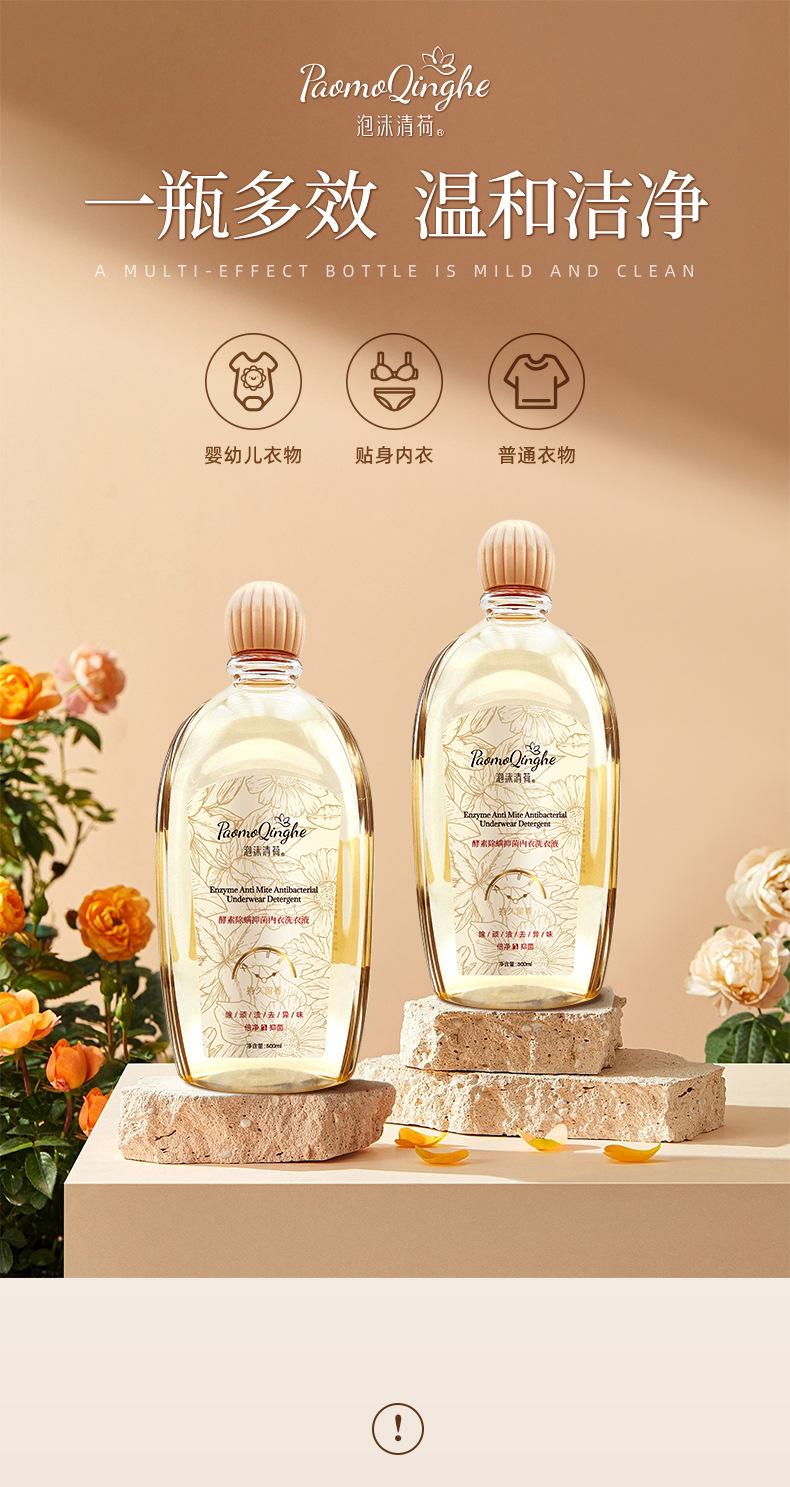 Espuma Qinghe Planta Enzima Ropa Interior Líquido para Lavar Ropa Interior 500ml Eliminación de ácaros Antibacterial Líquido de Limpieza de Ropa Interior para Madres y Bebés Especial