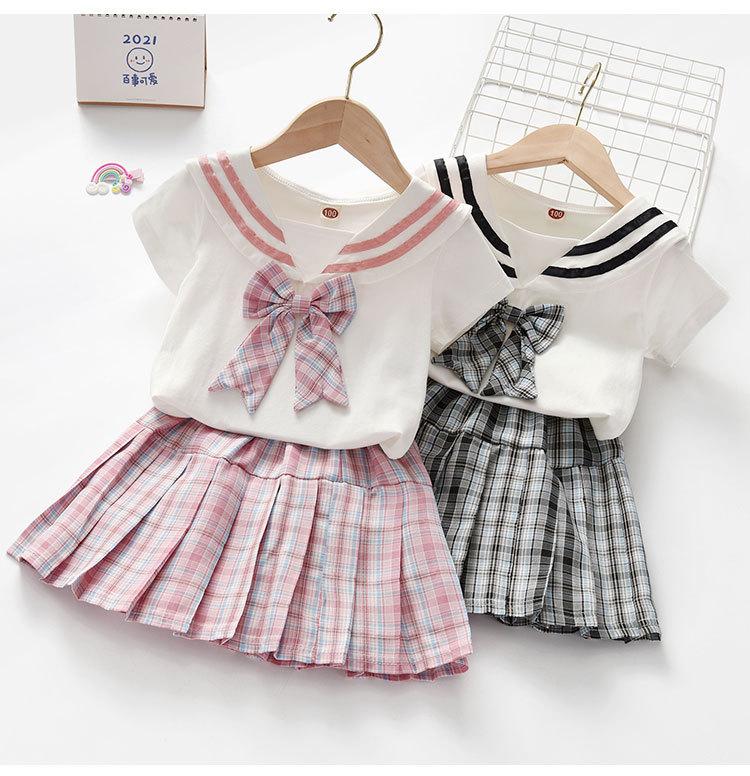 Trajes para Niñas Ropa de Verano 2025 Nuevo Estilo Ropa para Niños Celebridad de Internet Ropa para Bebé Estilo Universitario Estilo Occidental Falda para Niños Conjunto de Dos Piezas