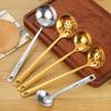 Cuchara de acero inoxidable dorada, cuchara para sopa de olla caliente coreana, colador de mango largo, cuchara grande para sopa de olla caliente doméstica, cuchara dorada