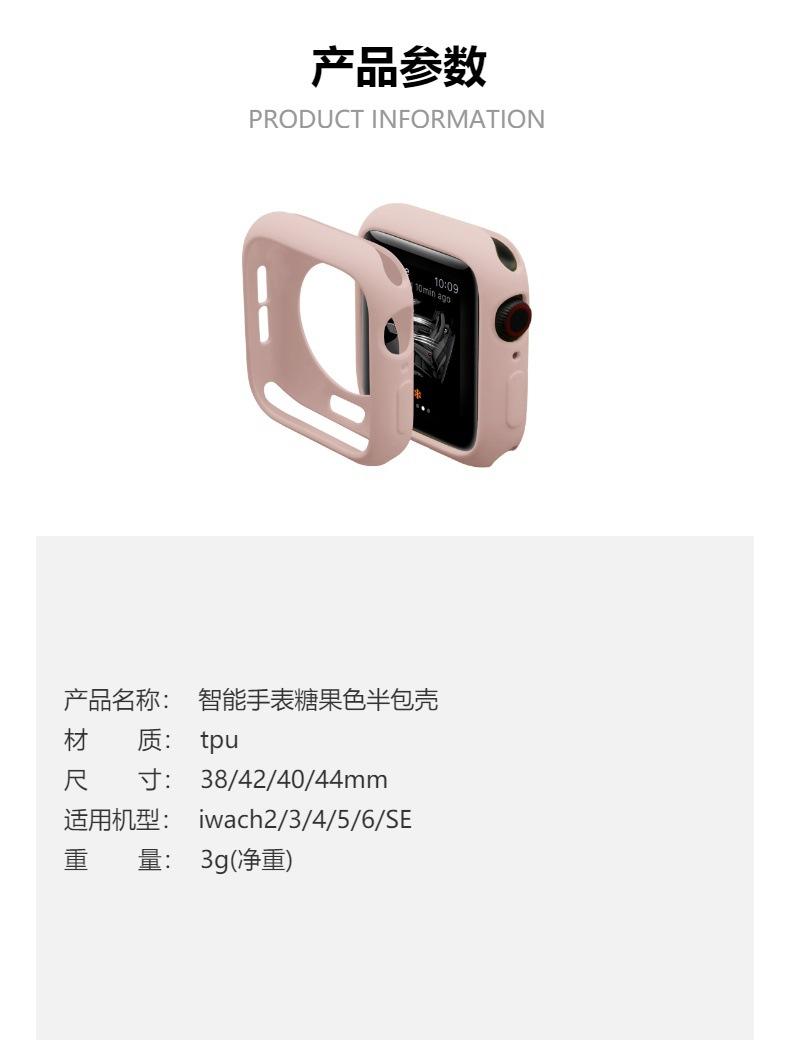 Estuche para Apple Watch, color caramelo, TPU suave, paquete de medio, estuche protector para iwatch, estuche para Apple Watch, venta al por mayor