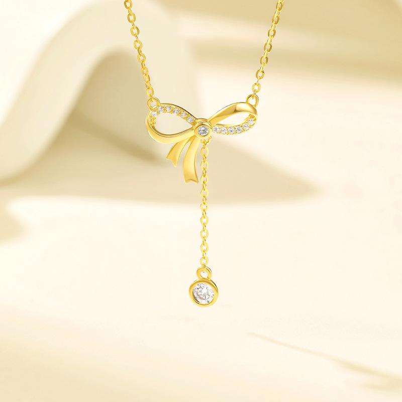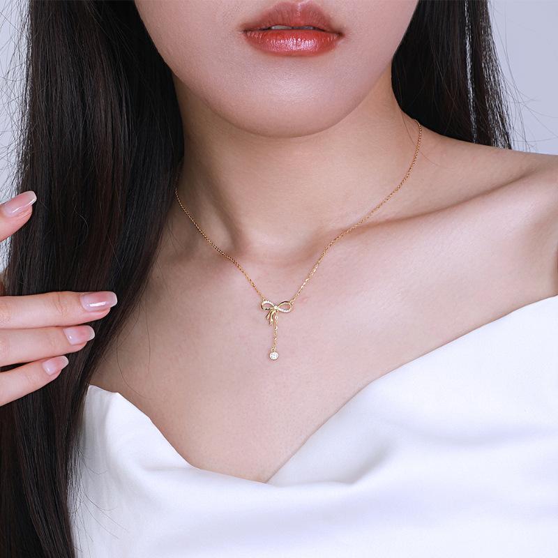 Collar con lazo de circonitas con microincrustaciones de diseño de nicho para mujer, estilo lujoso, ligero, elegante, a la moda, combinable con todo, de alta calidad, con cadena de clavícula.
