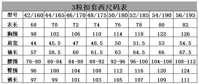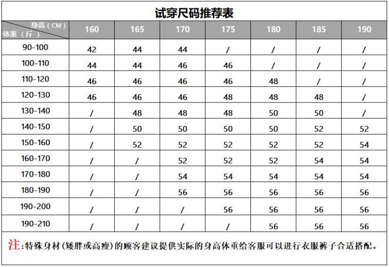 165/84A, 170/88A, 175/92A, 180/96A, 185/100A, 190/104A, 160/80A, 195/108A