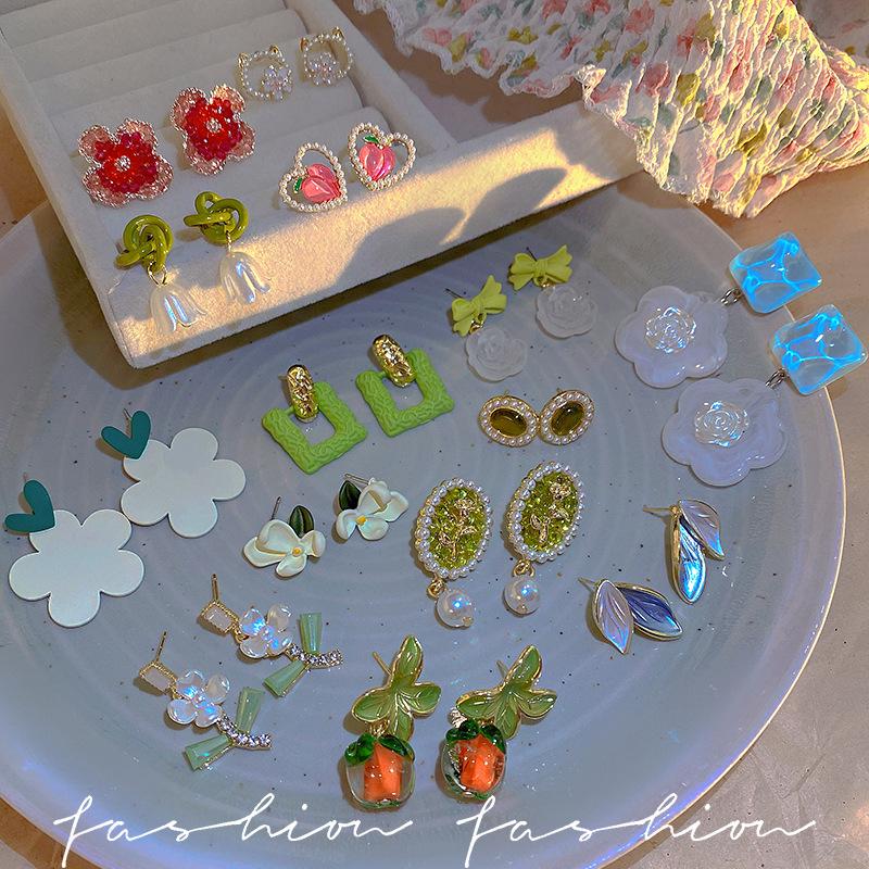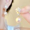 Pendientes de aguja de plata 925 de primavera y verano con pequeñas flores frescas para mujer, temperamento de alta gama, nicho, pendientes de perlas, joyería para la oreja al por mayor