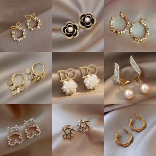 Pendientes de perlas para mujer, estilo ins, sencillos, de alta gama, con temperamento de nicho, pendientes retro de celebridades de Internet, aguja de plata al por mayor