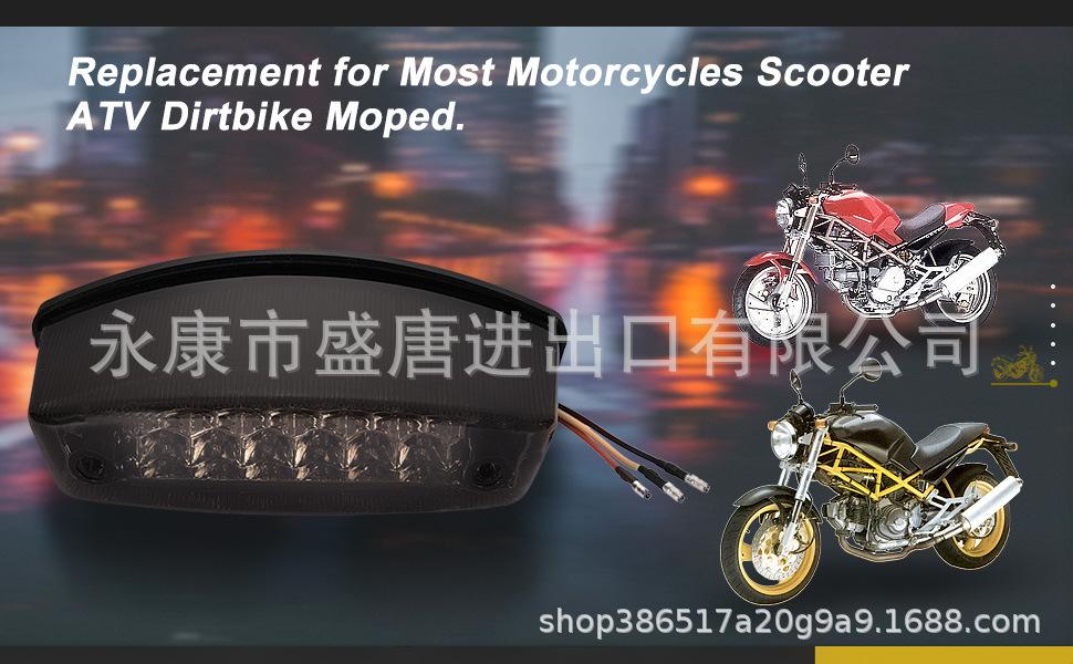 Luz de freno trasera LED para motocicleta, luz de señal de giro trasera, luz indicadora de estacionamiento, luz negra, apta para scooter, vehículo todoterreno