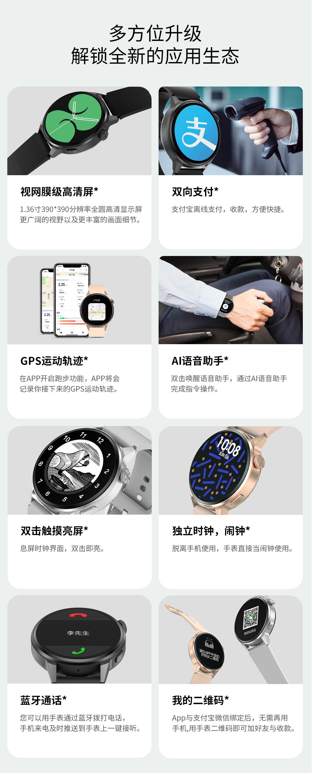 Reloj inteligente DT4+ con Bluetooth, llamadas, pagos sin conexión, monitorización del ritmo cardíaco y del sueño, mensajes, contador de pasos deportivo.