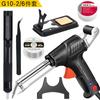 Contenido del set: pistola de soldar + pinzas de punta puntiaguda antiestáticas + pinzas de punta curva antiestáticas + alambre de estaño de 50 g