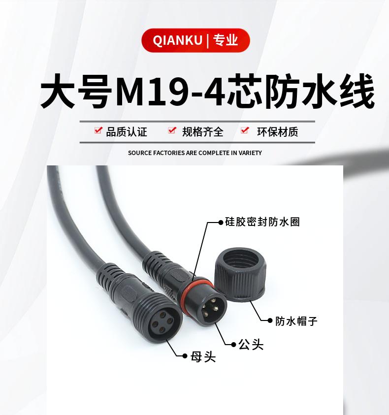 Compra Conector M19 Cable de Conexión de 4 Núcleos 0.75 Cuadrados Cable de Señal de Alimentación de Equipo Conector Macho-Hembra Led Especial al por mayor en Joom.pro