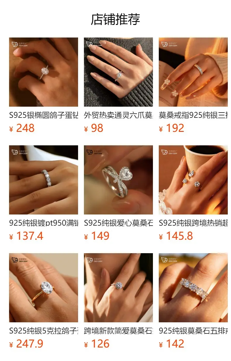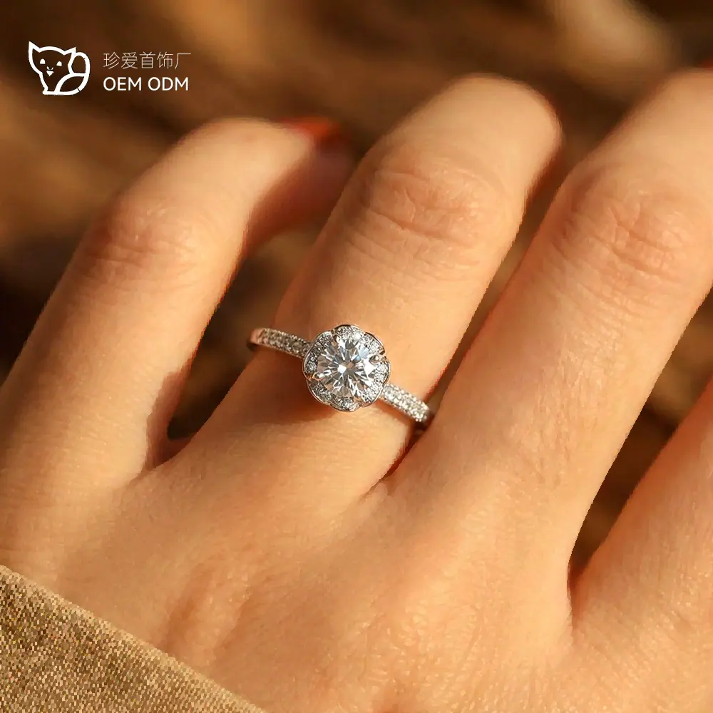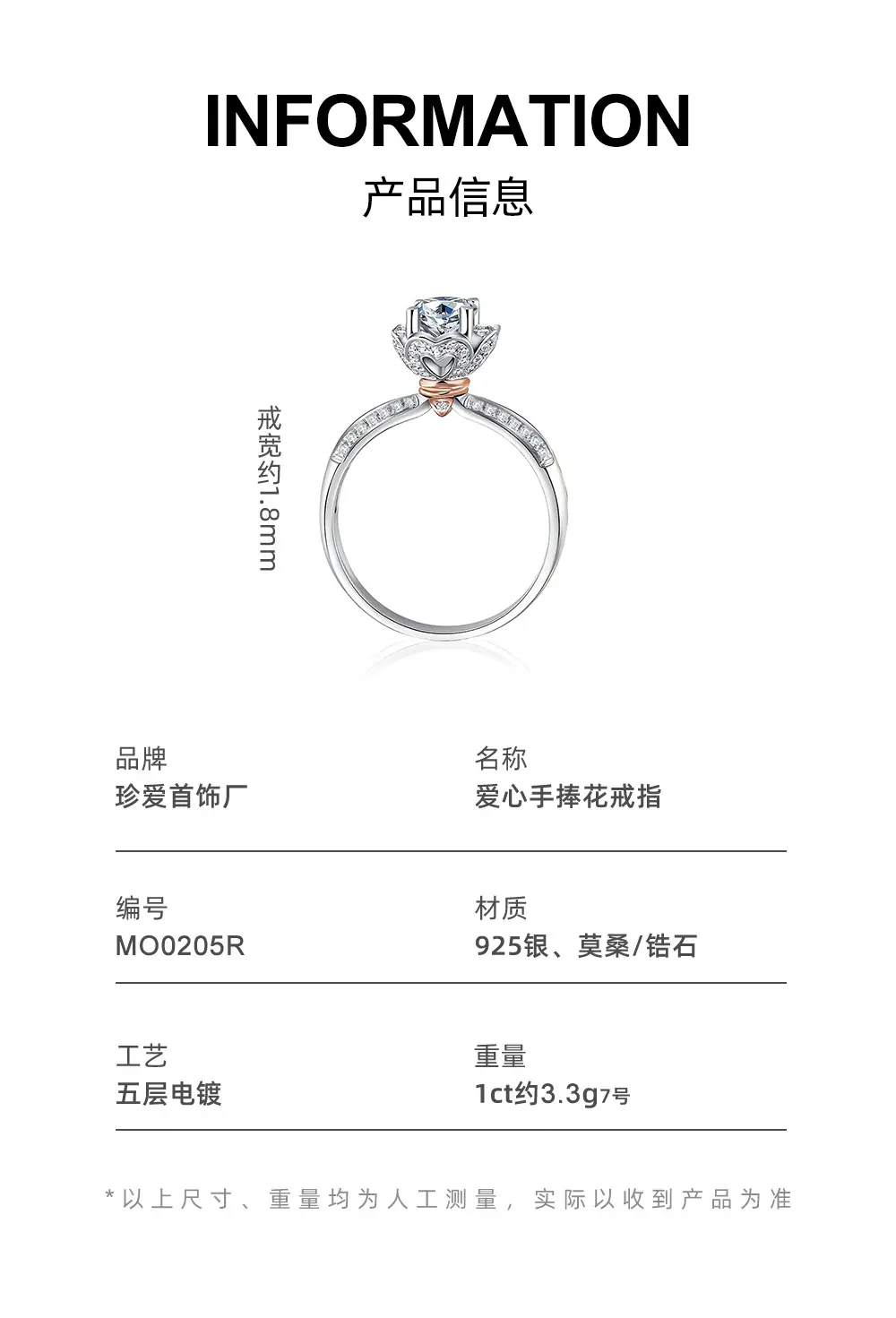 Anillo Ramo de Corazones de Plata Esterlina S925 con Separación de Color Anillo Artificial de Lujo Accesible Anillo de Moissanita Transmisión en Vivo Venta al por Mayor Transfronteriza