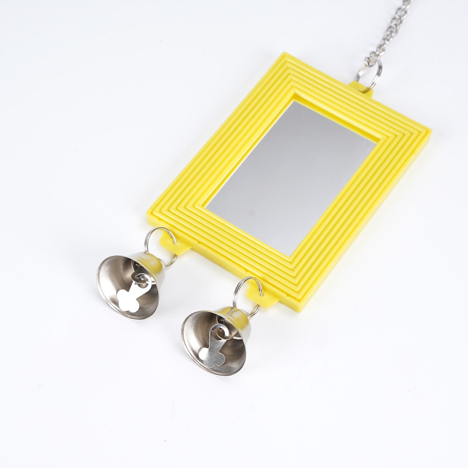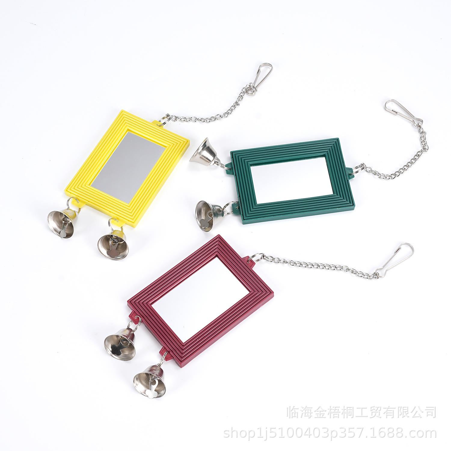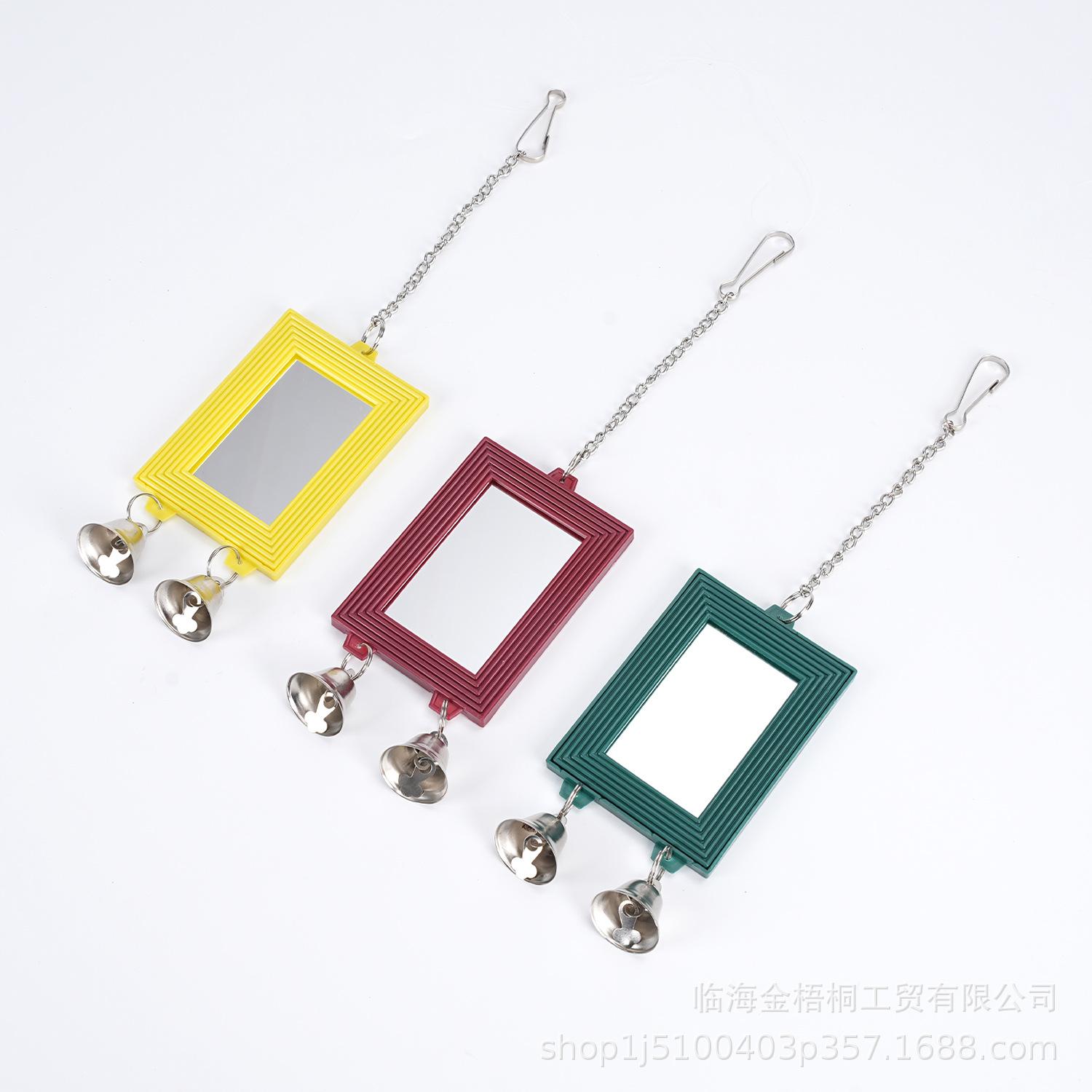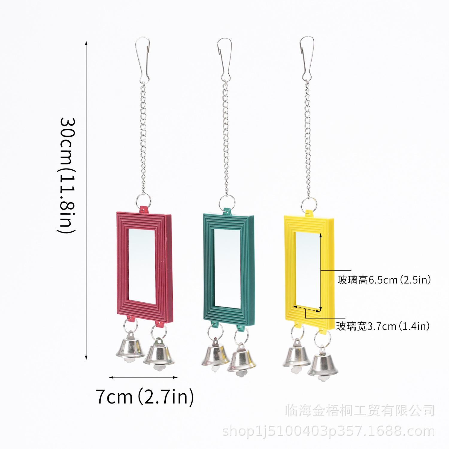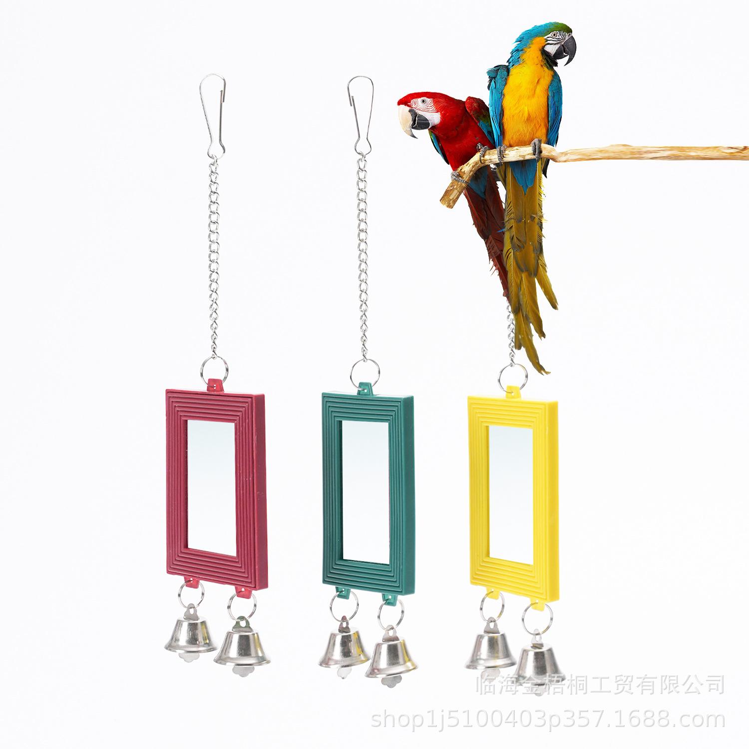 Juguete para loro transfronterizo juguete para pájaro cuadrado de doble cara espejo para pájaro suministros para jaula de pájaros decoración traje accesorios colgante campana