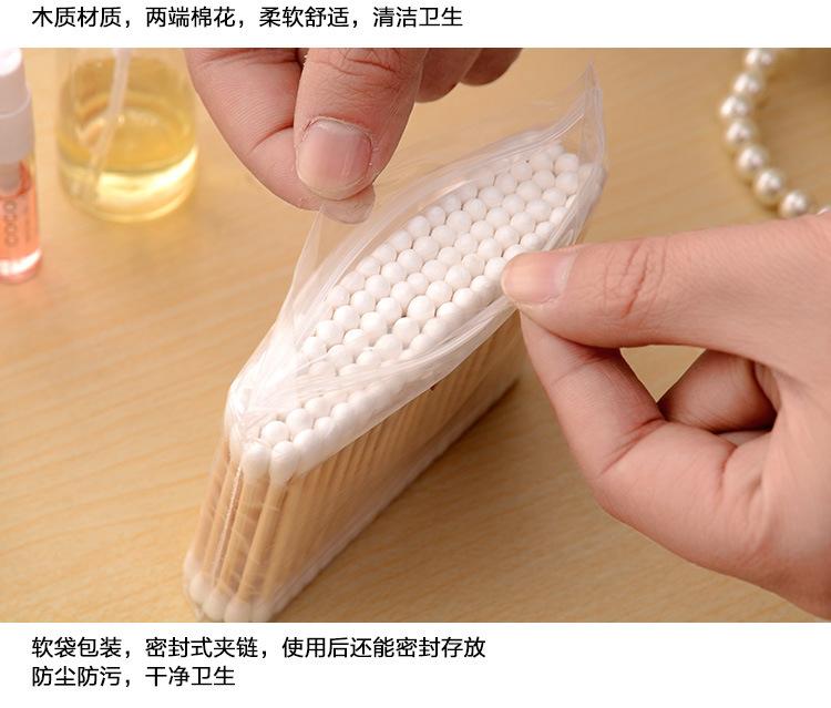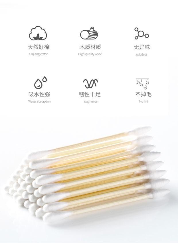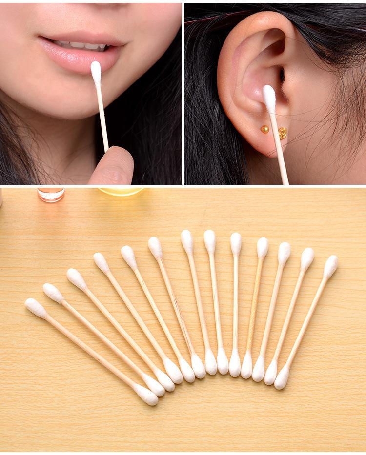 Hisopos de Algodón con Doble Punta para Desmaquillar, Limpieza de Oídos, Palitos de Madera para Uso Seco y Húmedo, Hisopos de Algodón Desechables de Doble Cabeza Redonda