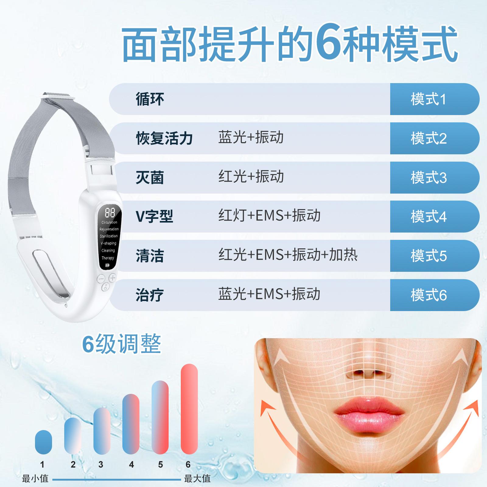 Dispositivo Popular Transfronterizo de Microcorriente para Adelgazar el Rostro Luz de Color Rojo y Azul Rejuvenecimiento de la Piel Dispositivo de Belleza Vibración Lifting Facial V Face Dispositivo para Adelgazar el Rostro