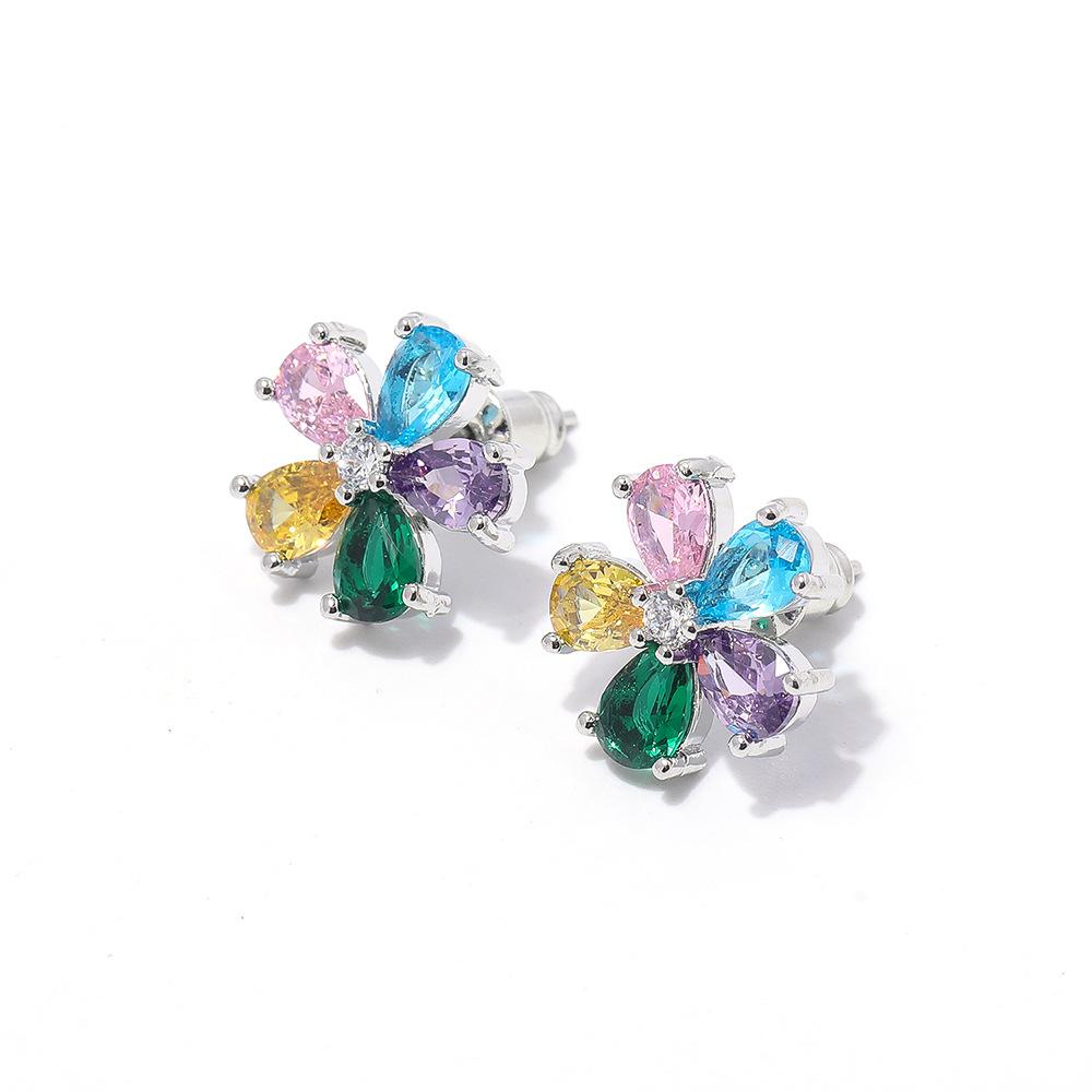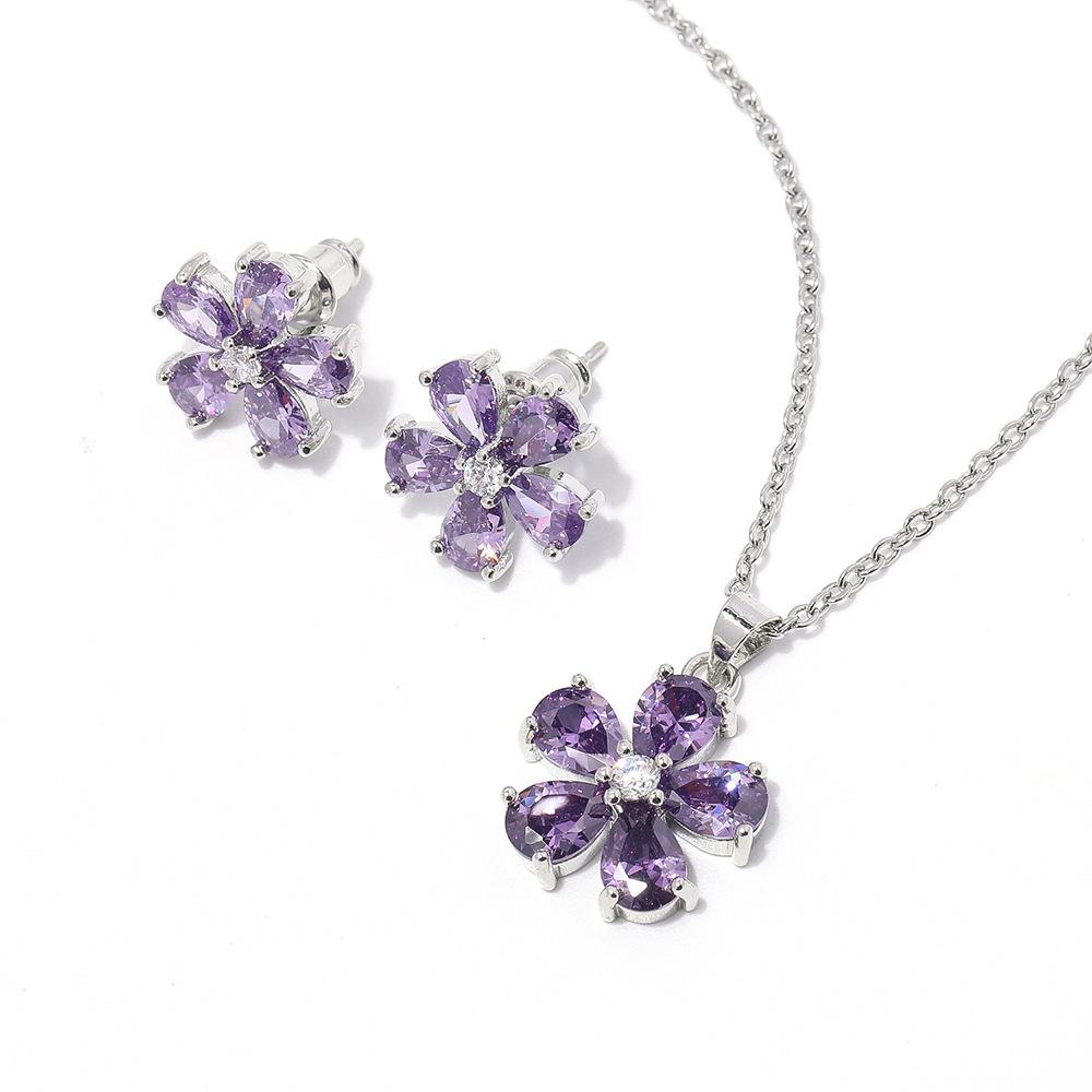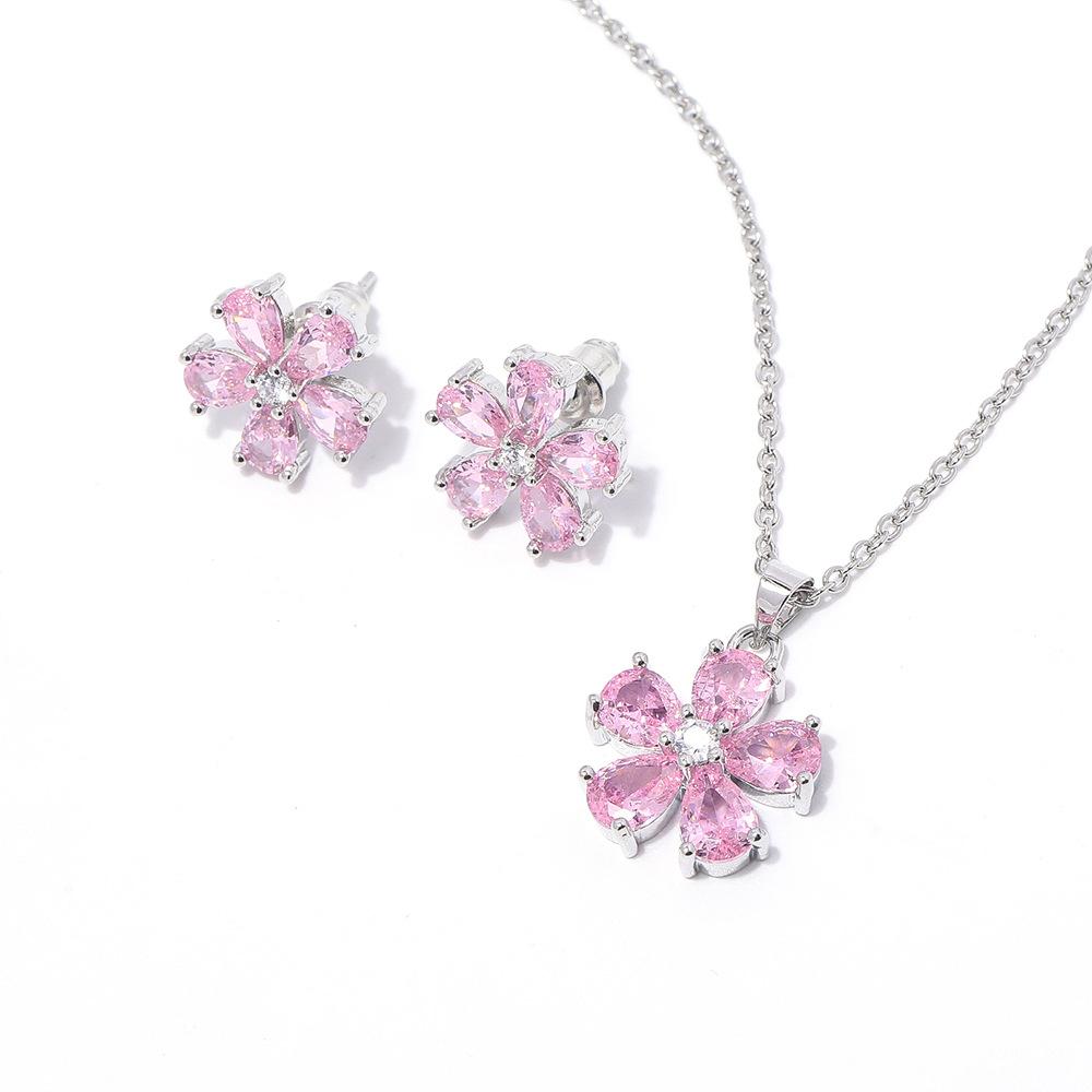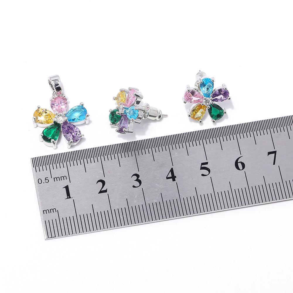 Set de circonitas de flor pequeña, set de circonitas de flor, set de aretes, collar, accesorios de hadas de alta gama, set de joyería opcional multicolor, venta al por mayor para mujeres