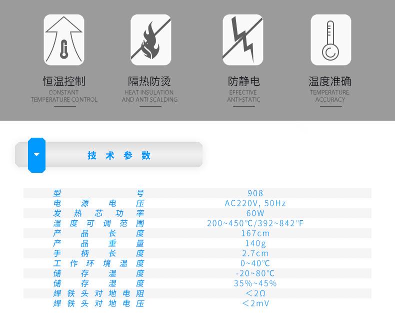 Soldador eléctrico de calentamiento interno YIHUA 907, herramienta de soldadura, soldador eléctrico 908 de 60 W, ajuste de temperatura del soldador de temperatura constante